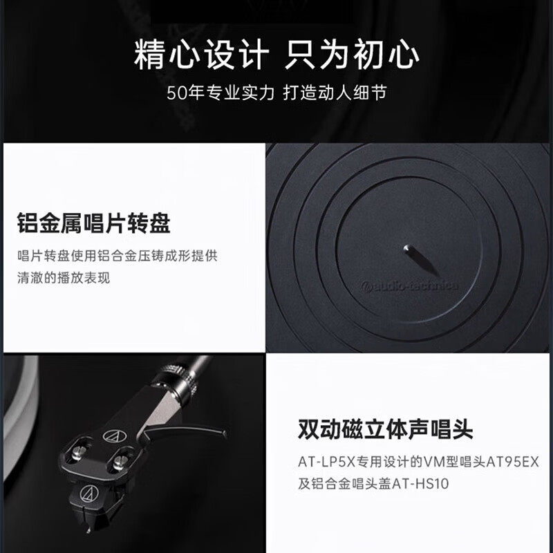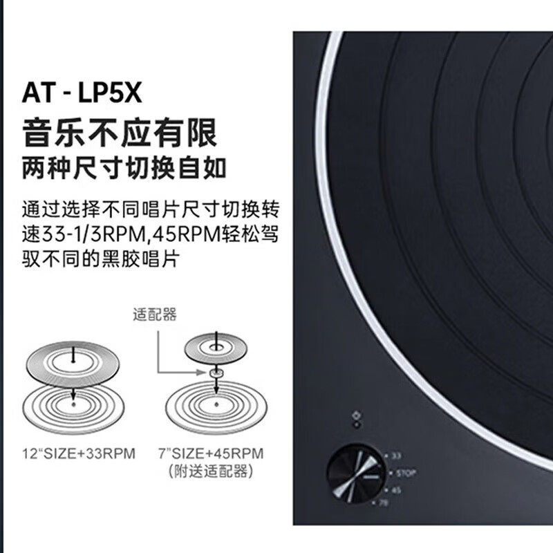 铁三角AT-LP5X直驱HiFi黑胶唱片机三速播放内置MM/MC前级数字转录