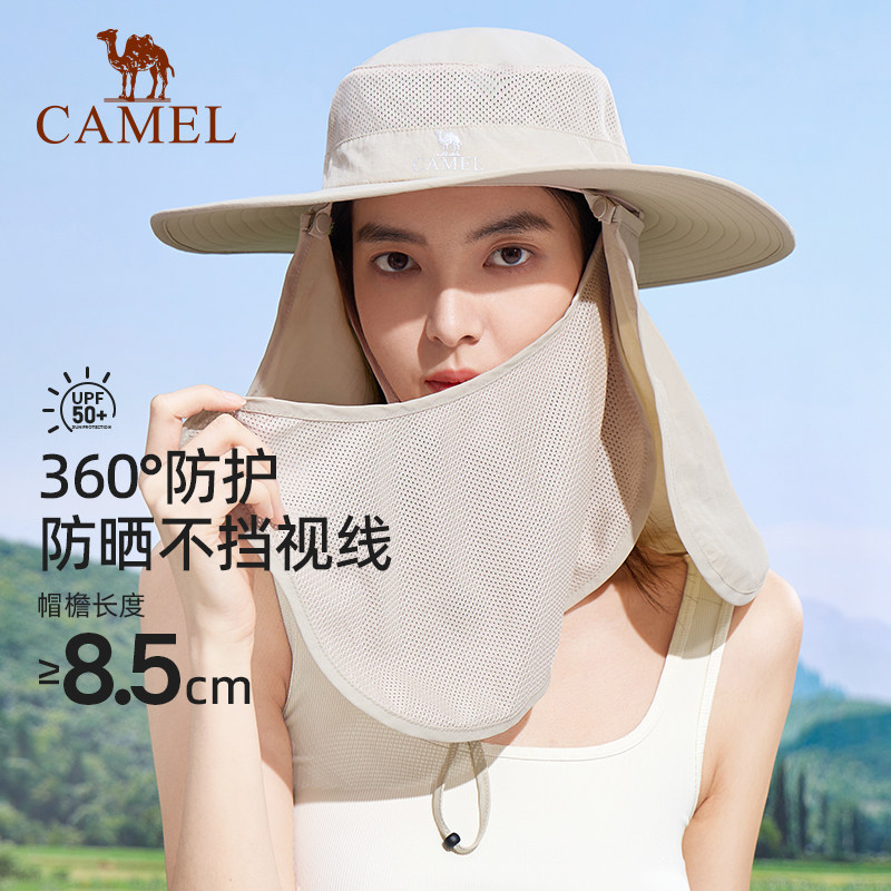 骆驼户外渔夫帽男女遮阳防晒防紫外线夏天登山太阳帽护全脸钓鱼帽