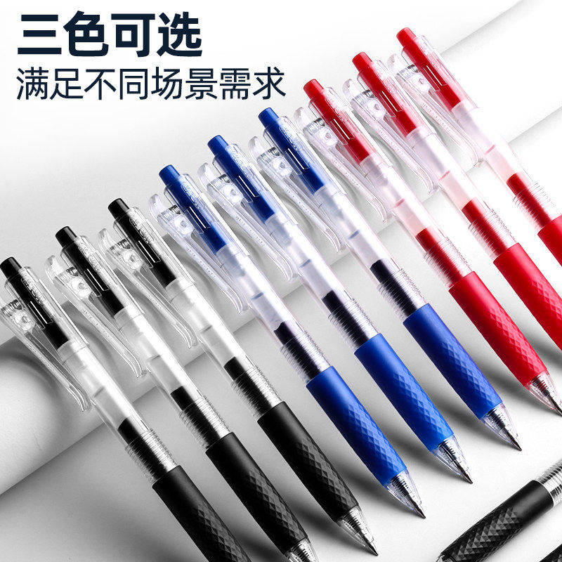 晨光中性笔按动式黑色水笔红色蓝色速干顺滑大容量学生用碳素笔