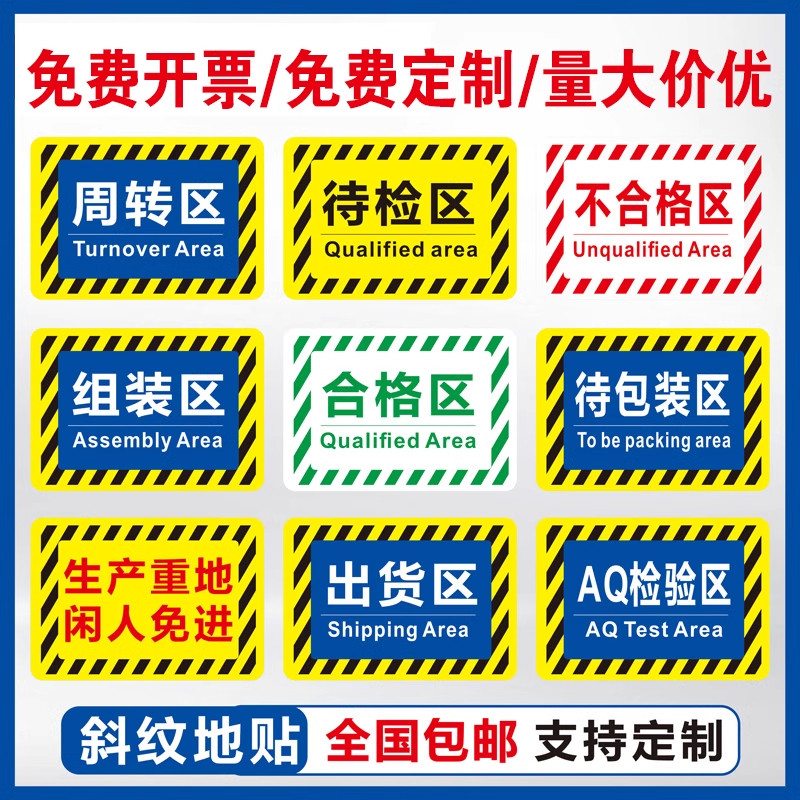 仓库分区标识牌托盘放置区液压车小推车放置处清洁工具垃圾桶放置区地贴指示牌生产车间成品区告示牌贴纸定制