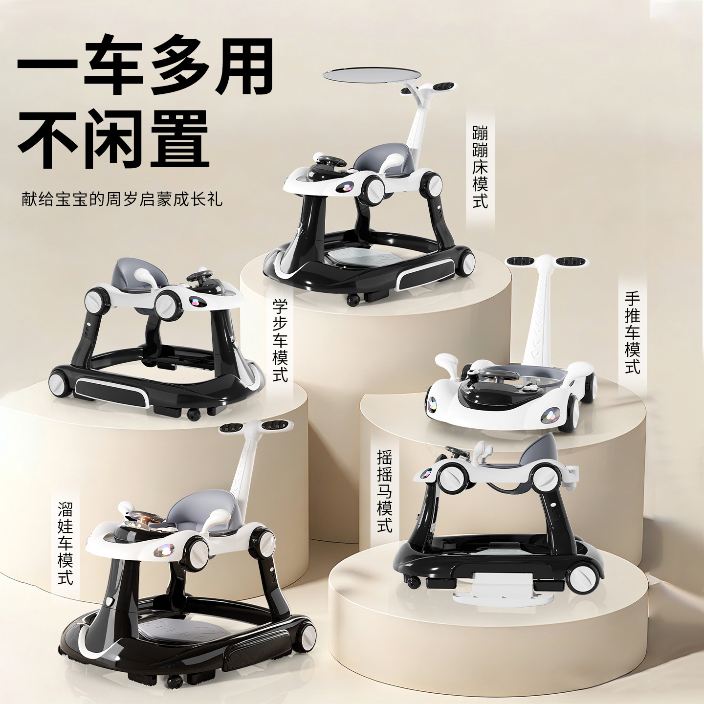 学步车防o型腿防侧翻6-18个月宝宝多功能助步车三合一婴儿手推车