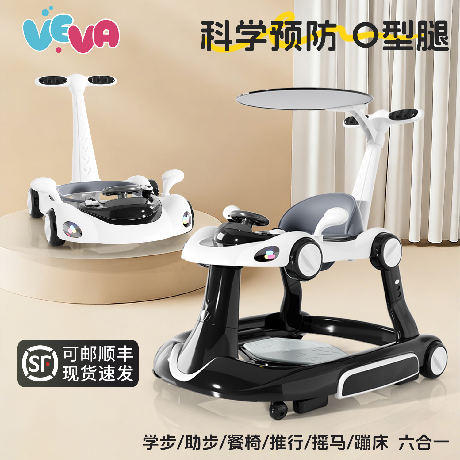 VEVA学步车2024新款防o型腿婴儿多功能防侧翻男宝宝手推车学行车
