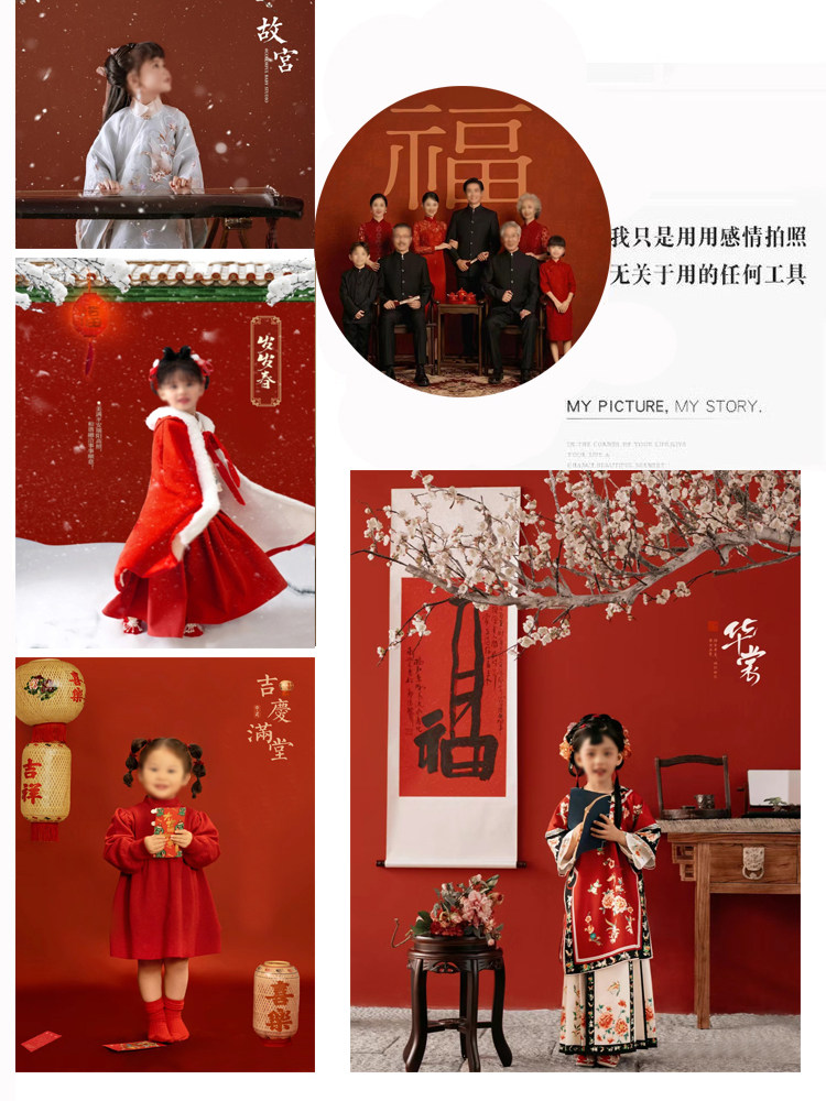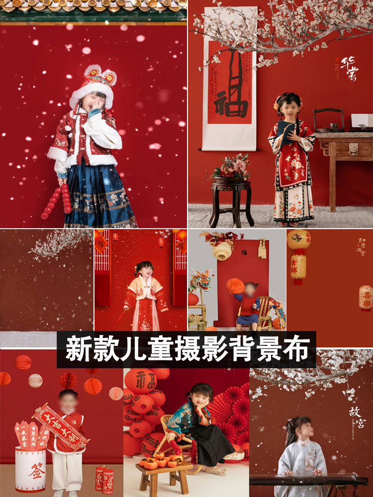 新款全家福背景布中国风古装过年红色福字拍照拍摄照相摄影背景纸