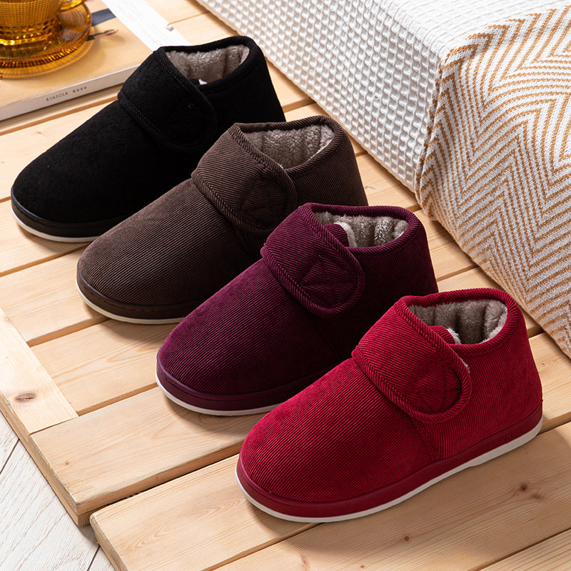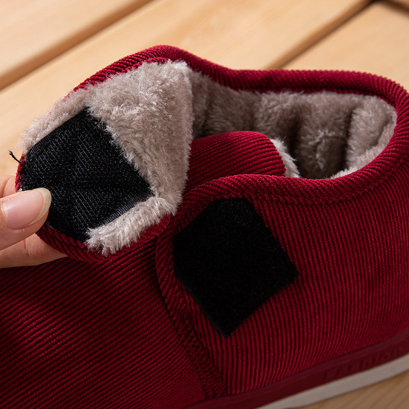 包跟保暖棉拖鞋棉鞋中老年加厚加绒男女防滑冬高帮80岁防摔红色