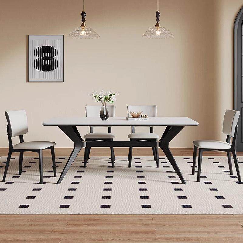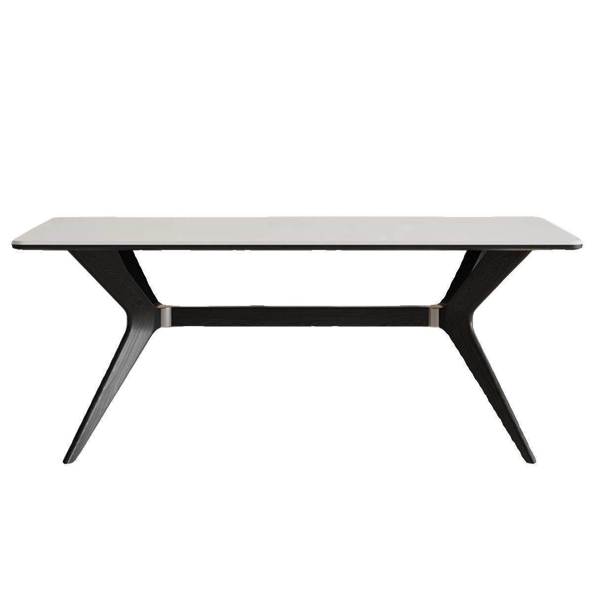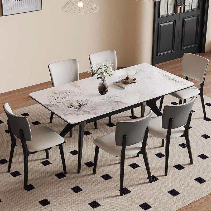 北欧复古实木岩板餐桌哑光白色长方形现代简约家用新款饭桌子