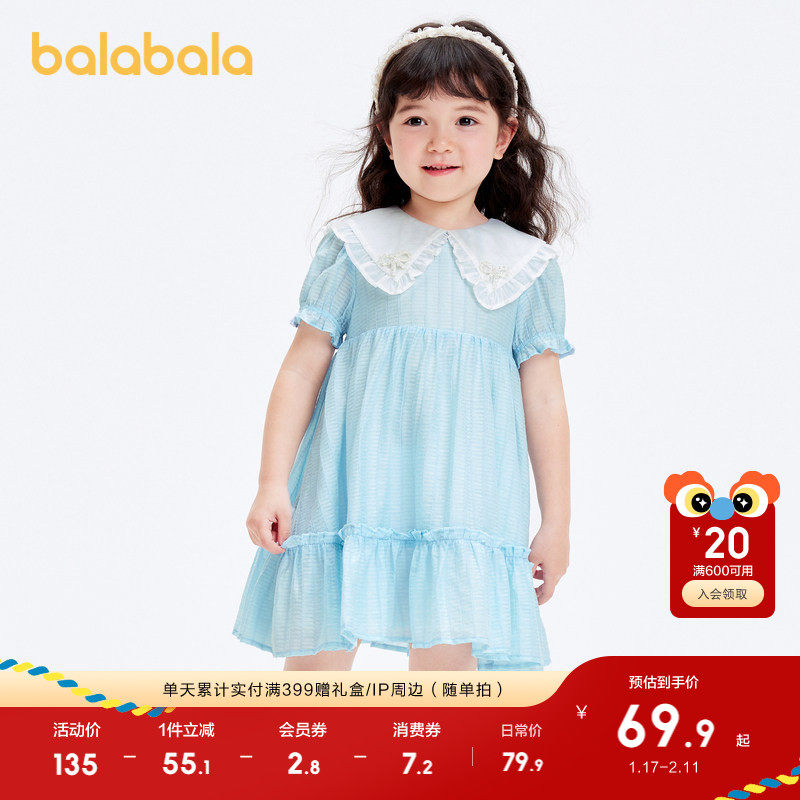 巴拉巴拉女童连衣裙夏儿童裙子小童可爱泡泡袖洋气甜美公主裙时尚