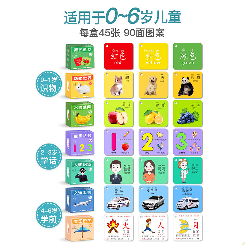 彩色卡片婴儿早教卡颜色认知教具启蒙宝宝玩具幼儿童识数字1到100