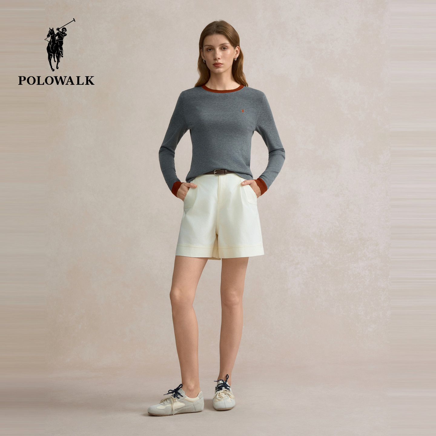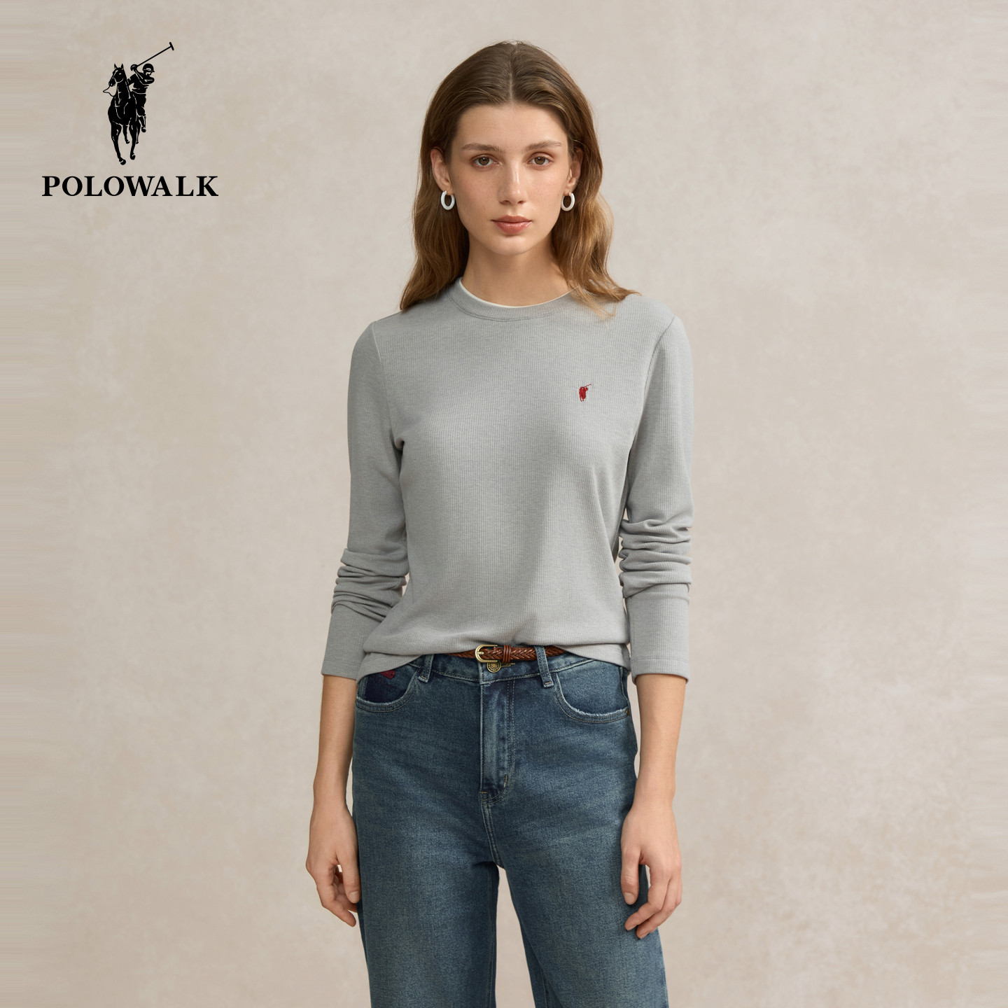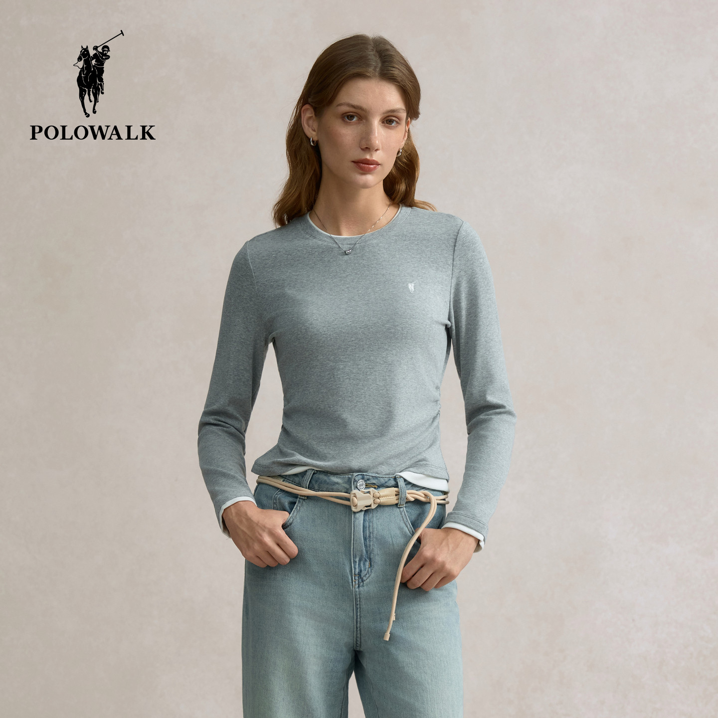 POLOWALK女士长袖T恤2026春季新款圆领收腰设计打底衫显瘦上衣