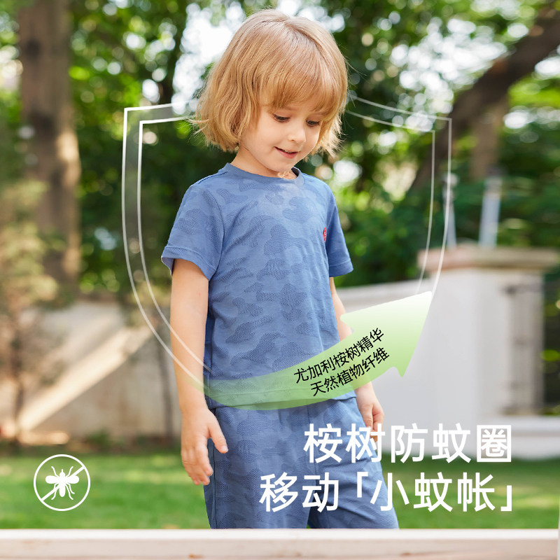 英氏儿童家居服夏季透气男童女童防蚊空调服睡衣睡裤2025新款套装