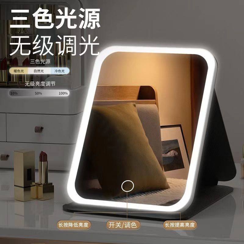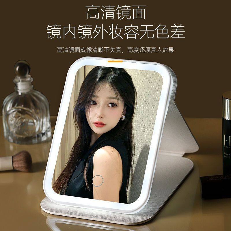2025款LED化妆镜带灯补光镜梳妆便携旅游充电镜子可折叠宿舍镜