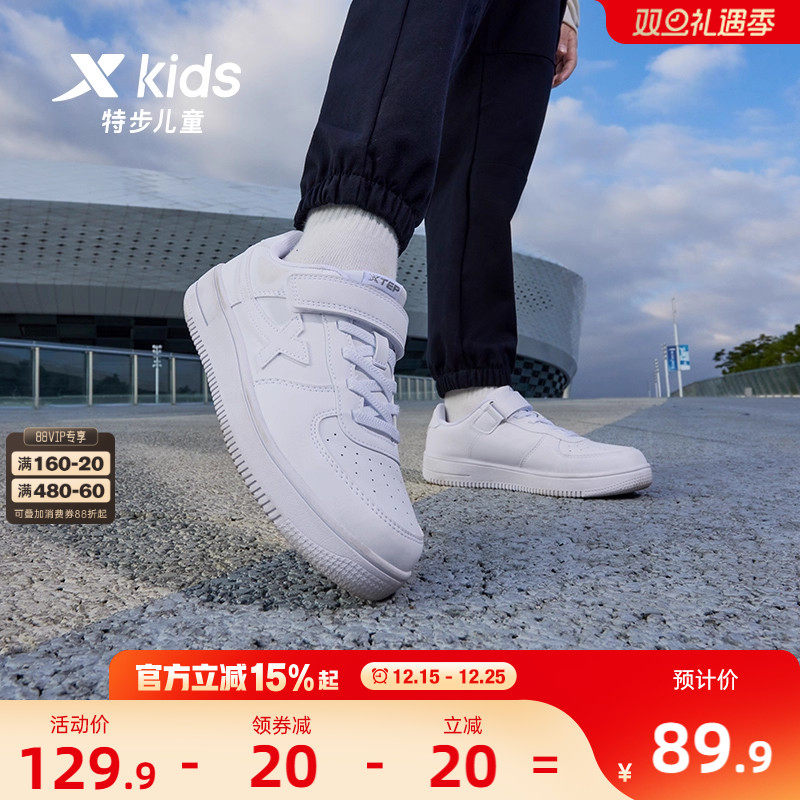 特步童鞋女童学生小白鞋儿童鞋子运动鞋男童板鞋休闲鞋白色滑板鞋