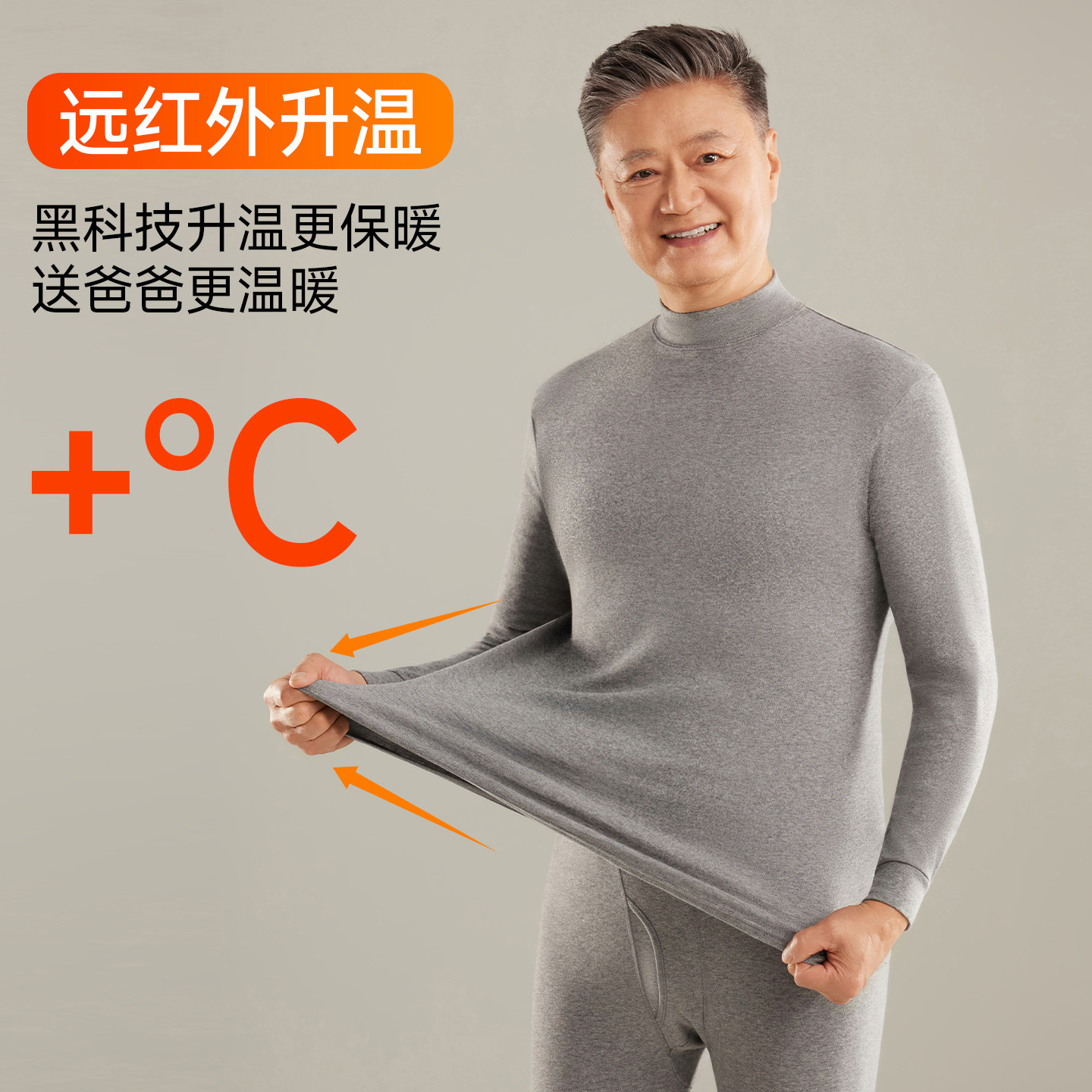 中高领保暖内衣男士加绒加厚套装大码德暖绒秋衣秋裤打底棉毛衫冬