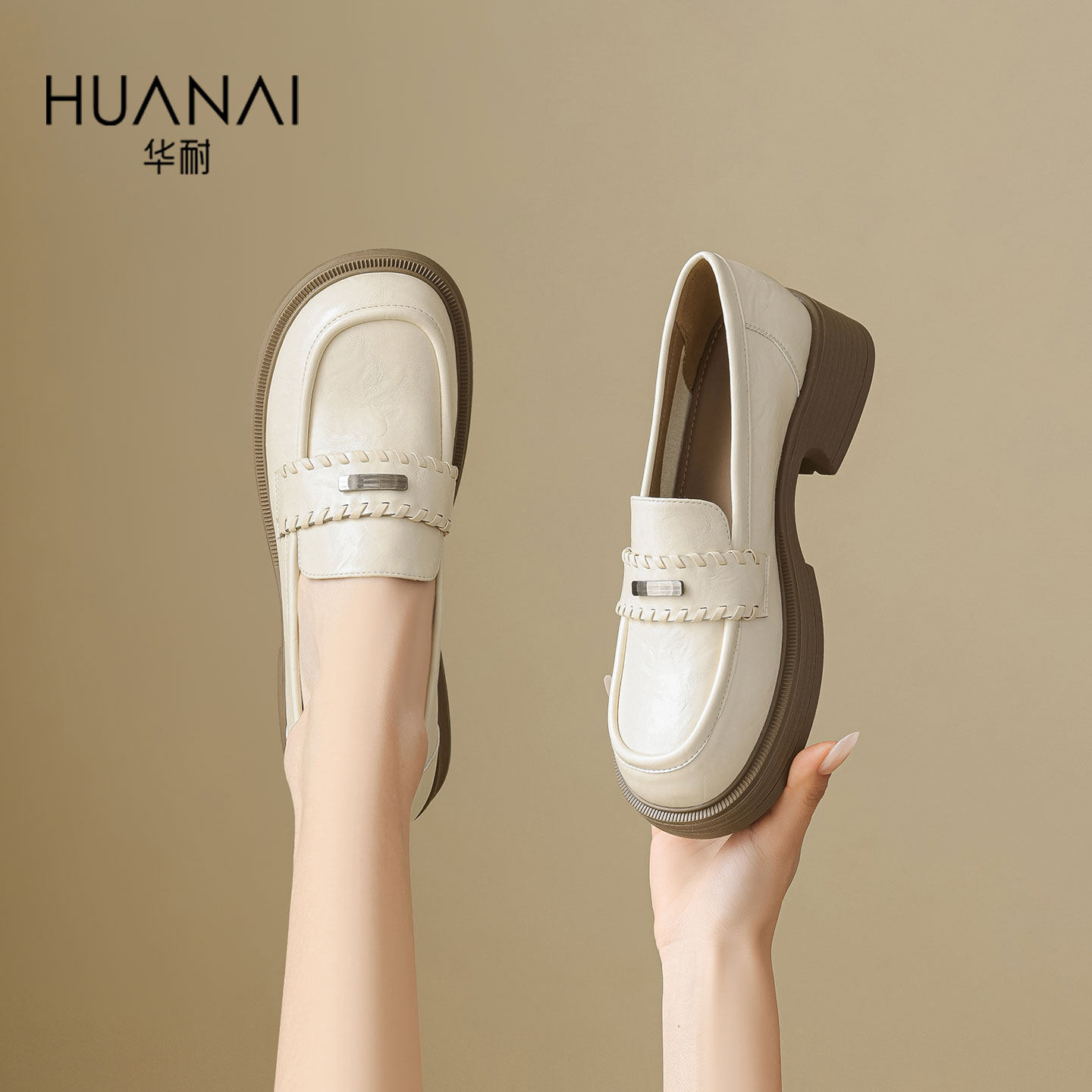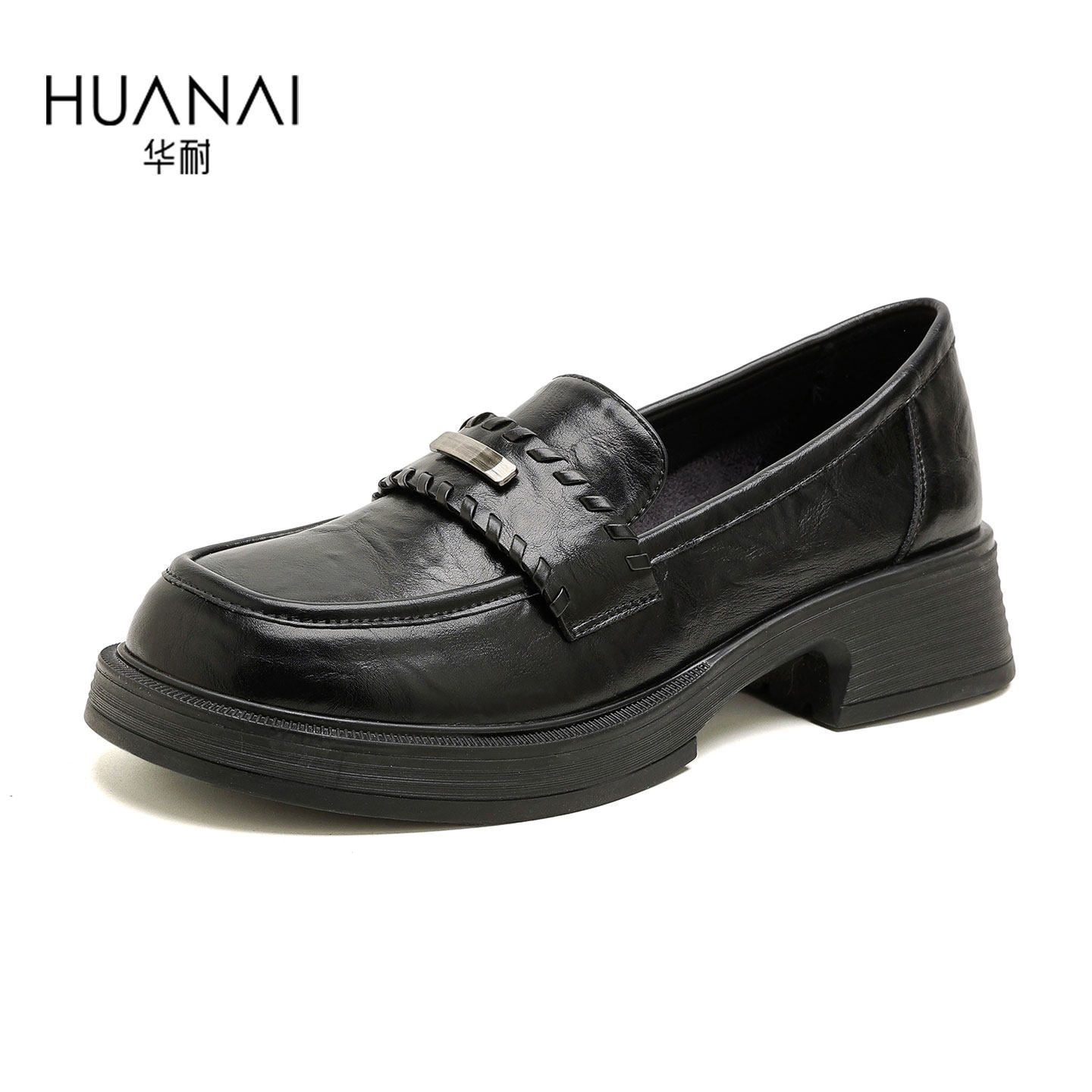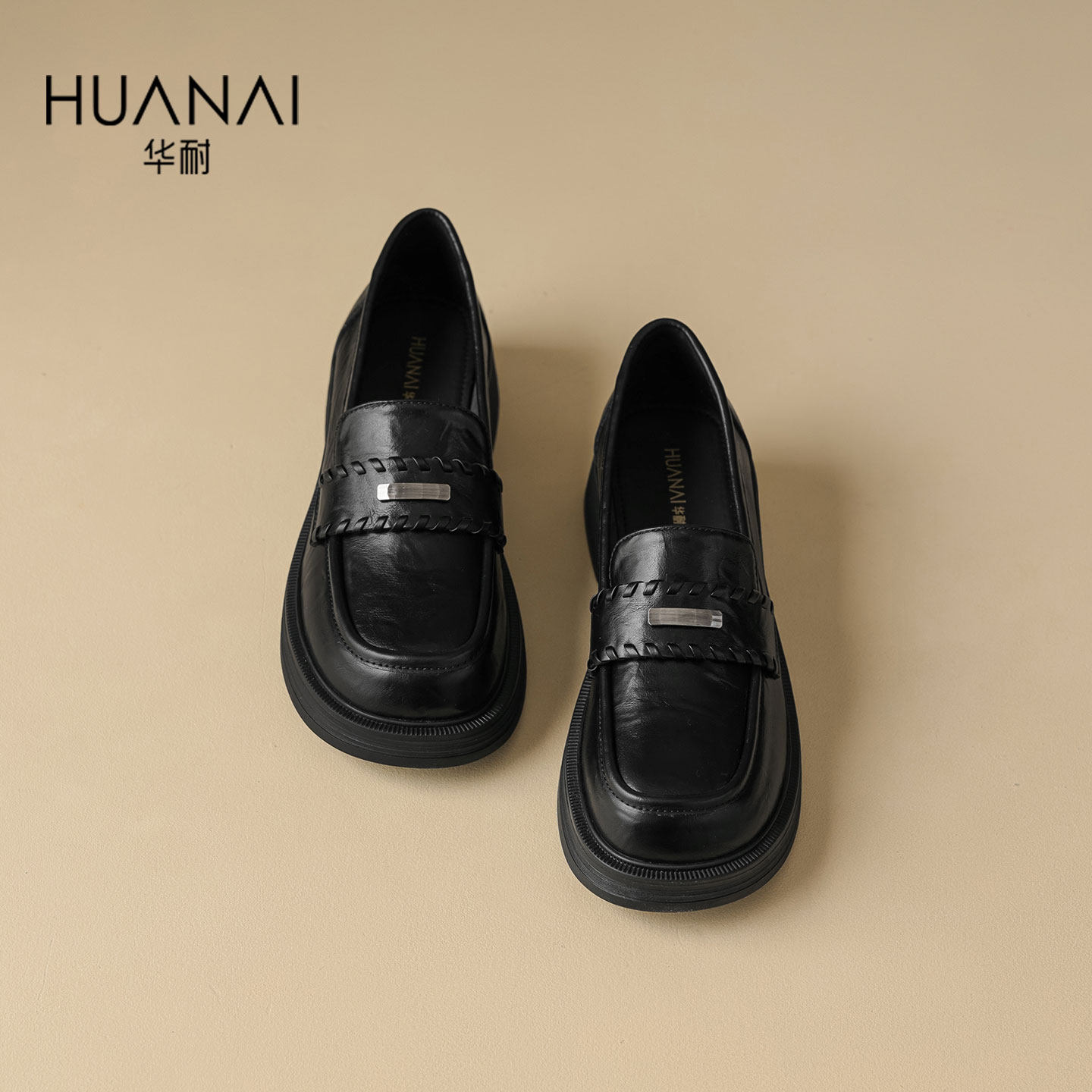 华耐厚底乐福鞋女2026春季新款英伦风小皮鞋一脚蹬懒人鞋软底单鞋