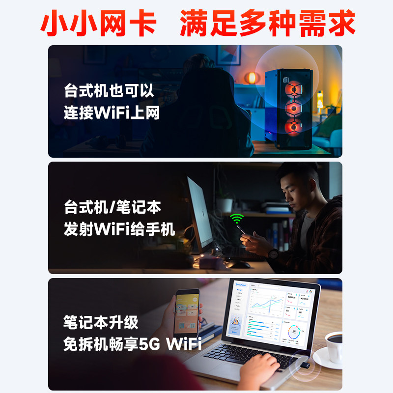 【急速发货】腾达 USB免驱无线网卡双频650M台式机笔记本热点上网360无限wifi网络5G迷你外置信号发射器U9