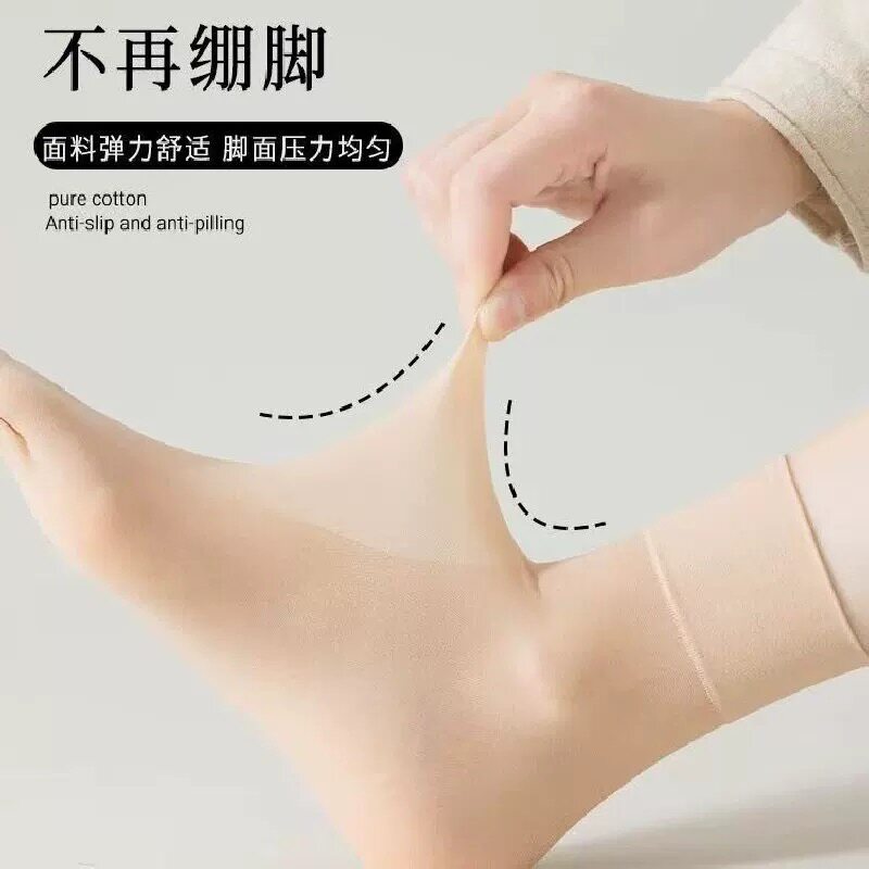 浪莎丝袜女春秋薄款水晶丝短袜耐磨防勾夏季黑肉色棉底袜子中筒袜