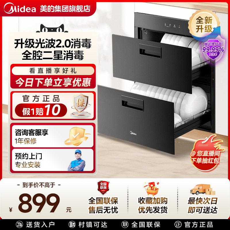 美的消毒柜家用嵌入式高温烘干一体100L碗柜厨房餐具消毒柜90Q15S