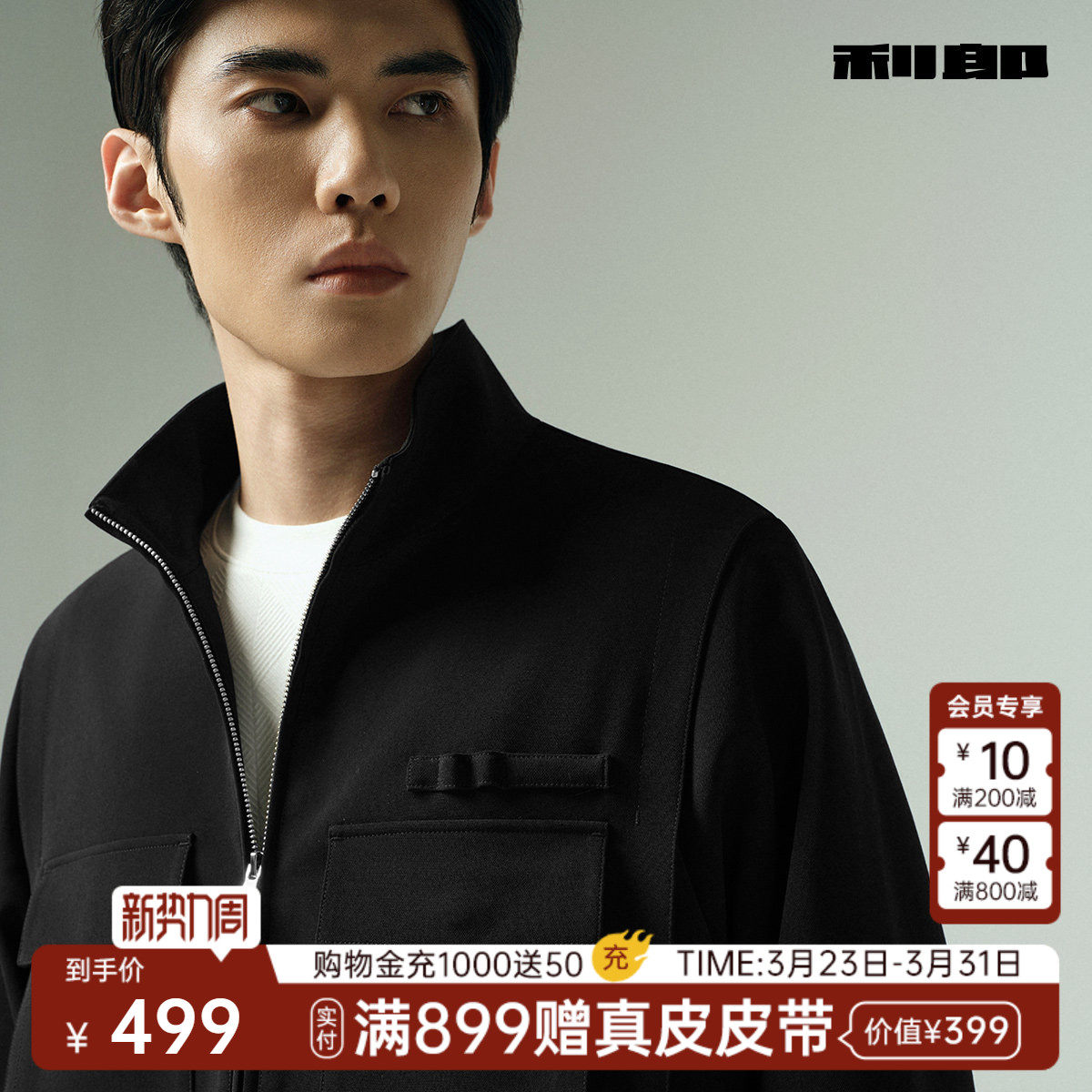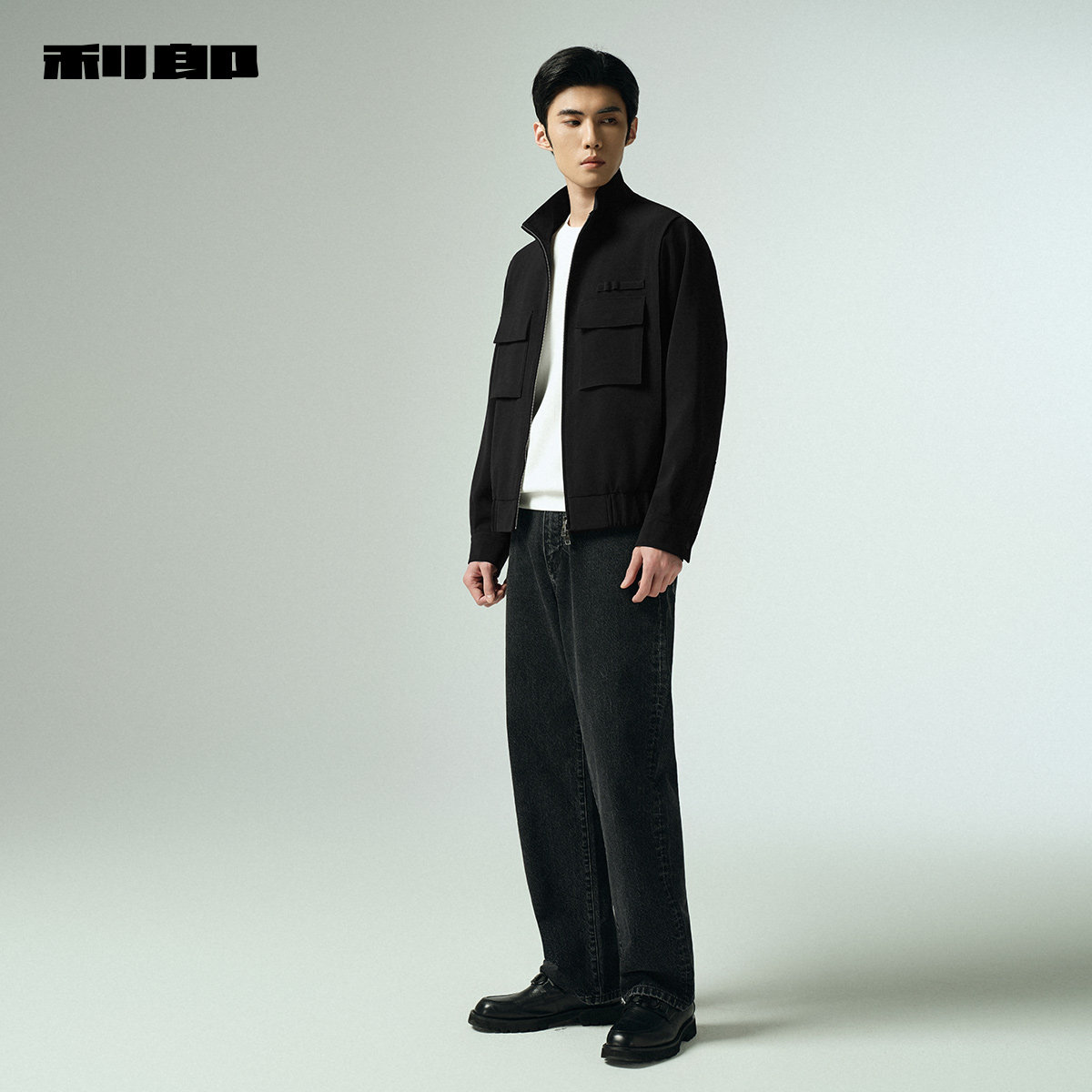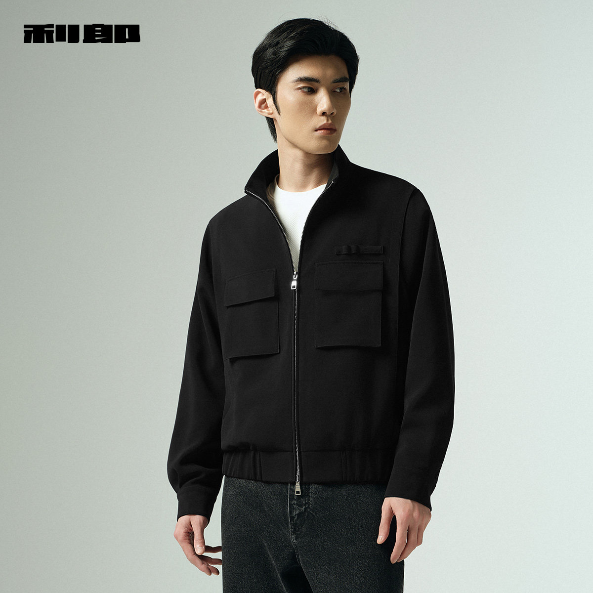 利郎官方 夹克男士春秋款新款时尚休闲男装黑色立领短款外套