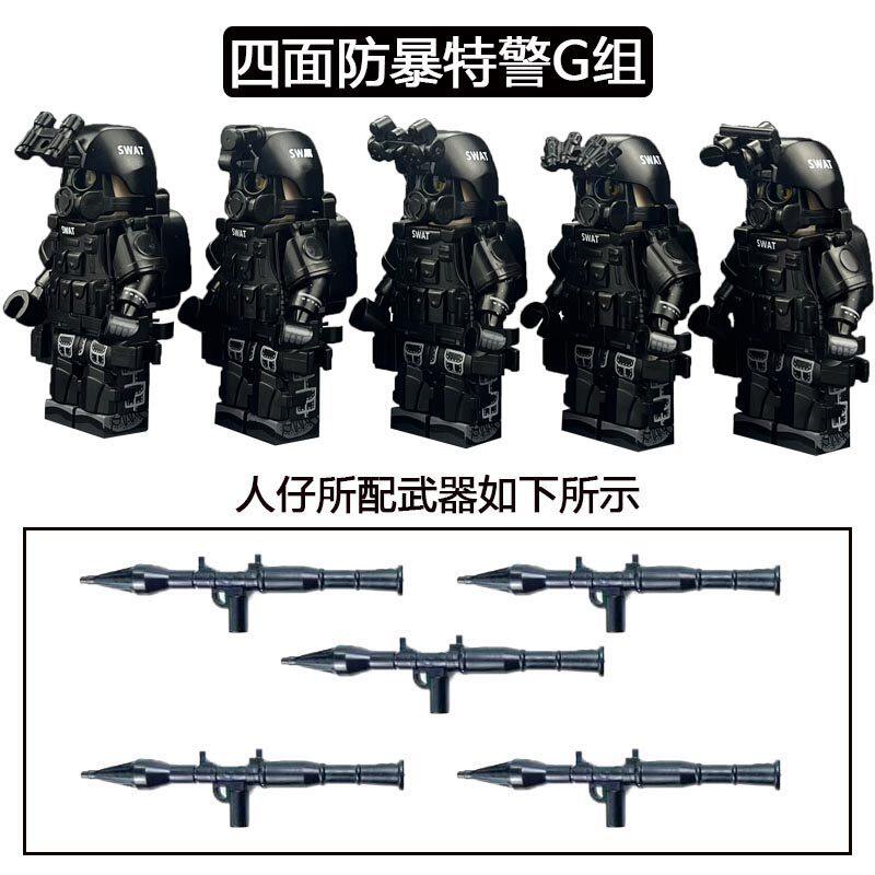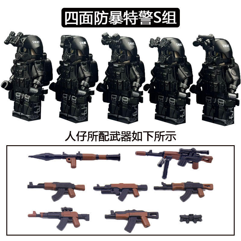 中国生化防毒军事人仔特种兵小人偶特警儿童拼装益智积木玩具