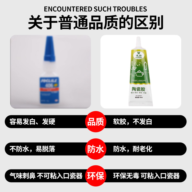 陶瓷胶强力粘合剂粘陶瓷专用胶耐高温瓷器紫砂壶花瓶修补胶