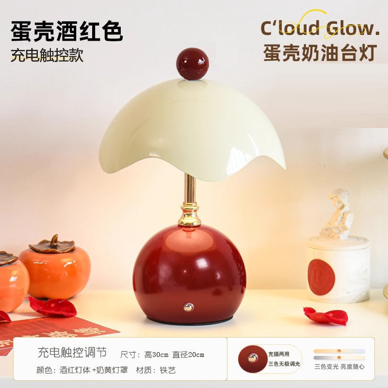 充电台灯卧室床头灯高级感轻奢蛋壳新款结婚长明灯一对氛围小夜灯