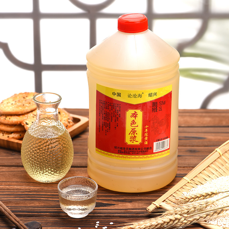 0添加花雕酒5年5斤绍兴黄酒本色10年加饭自饮2.5L桶做菜料酒老酒