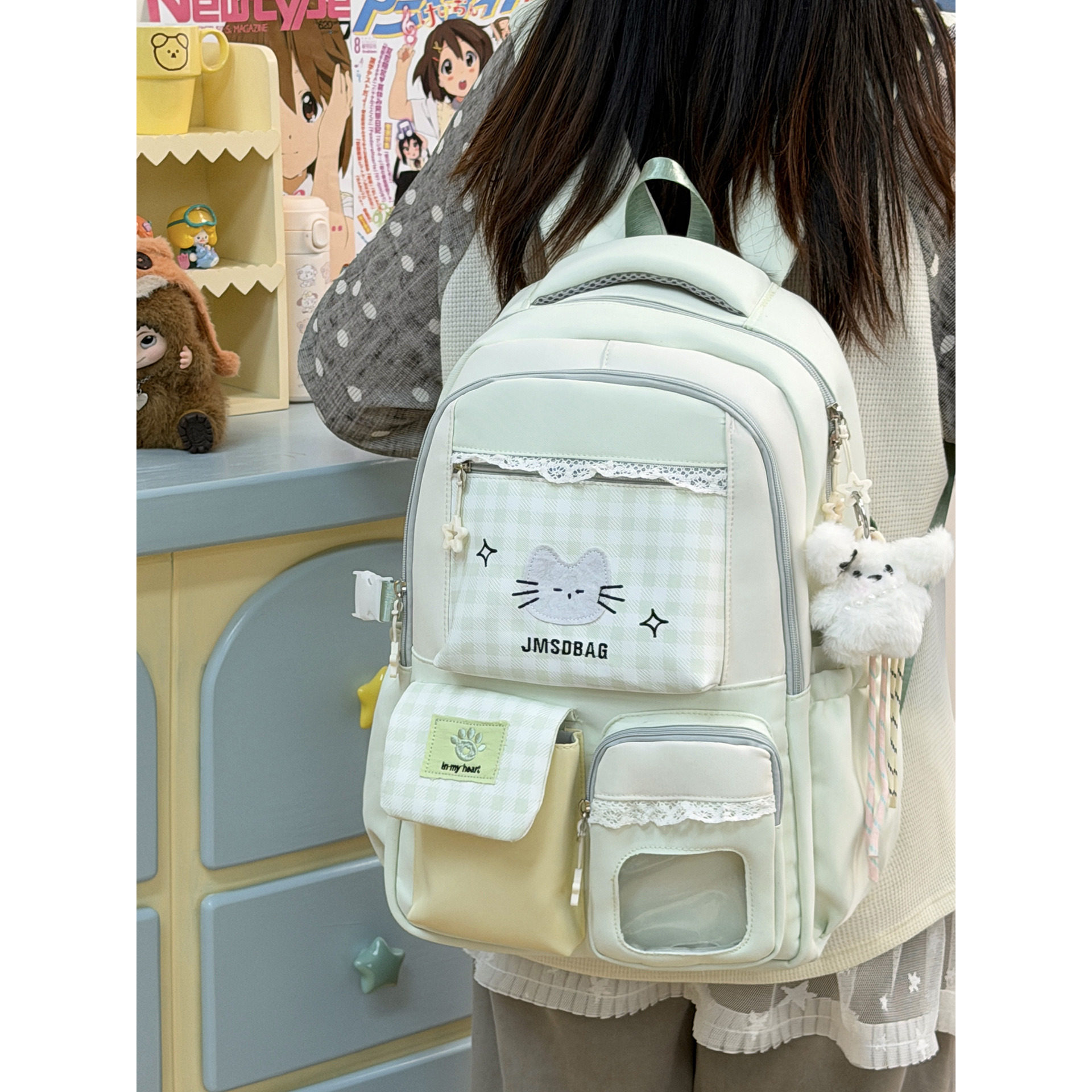 稻草人新款日系高颜值清新甜美糖果色透明吧唧痛包轻便大容量背包