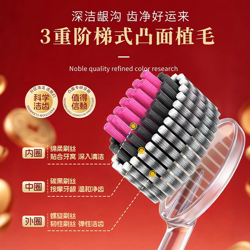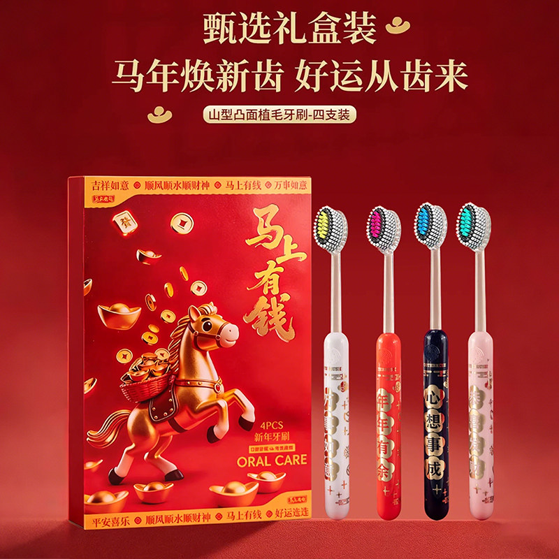 马年礼盒牙刷软毛成人牙缝刷官方旗舰店正品牌家庭装家用凸面山型