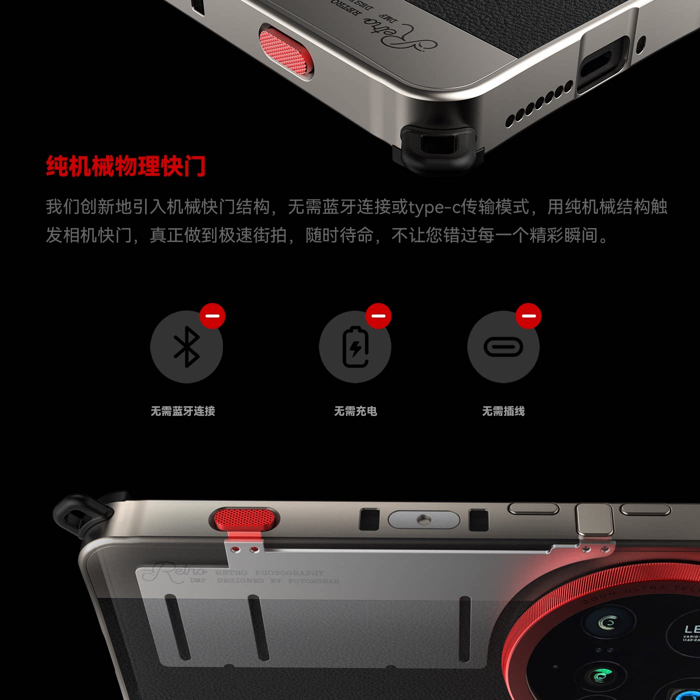 Fotorgear适用小米15ultra快门按键摄影手机壳套装复古金属按钮高级感拍照UV高清镀膜镜挂绳套件