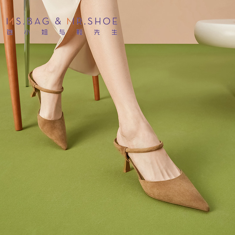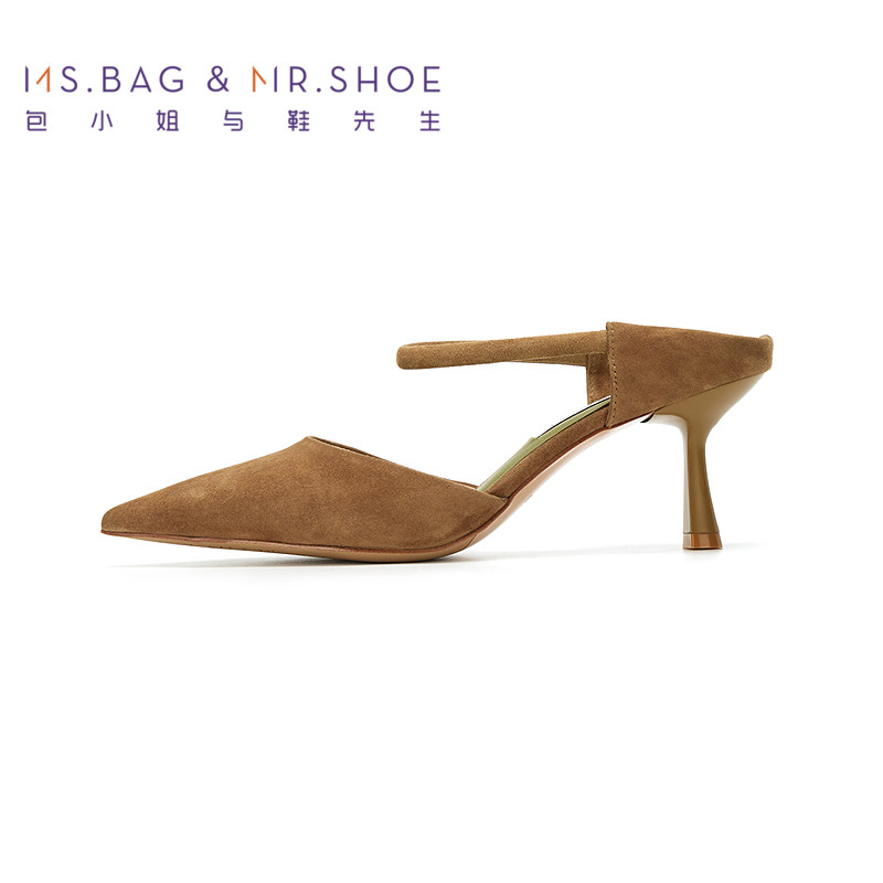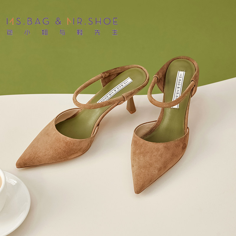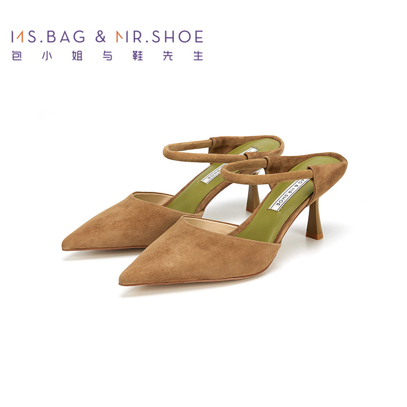 包小姐与鞋先生2025春夏新款苔藓绿羊皮填充条带细跟凉拖女251099