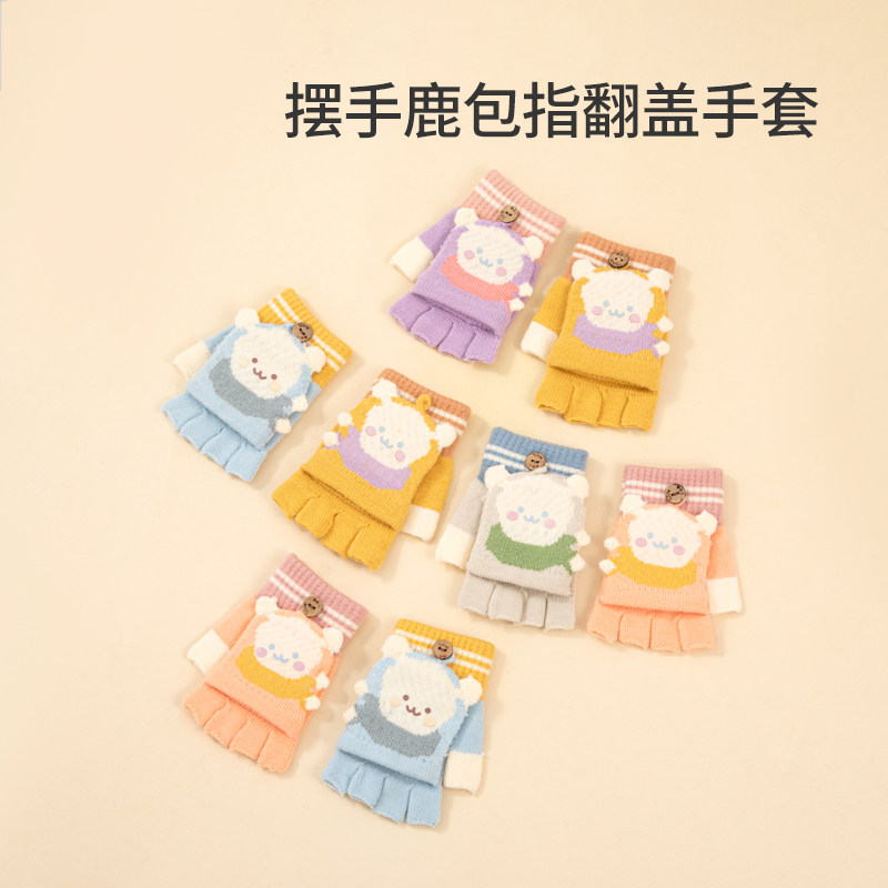 宝宝手套冬天儿童针织加厚小手套秋冬季婴儿露指五指翻盖半指女童