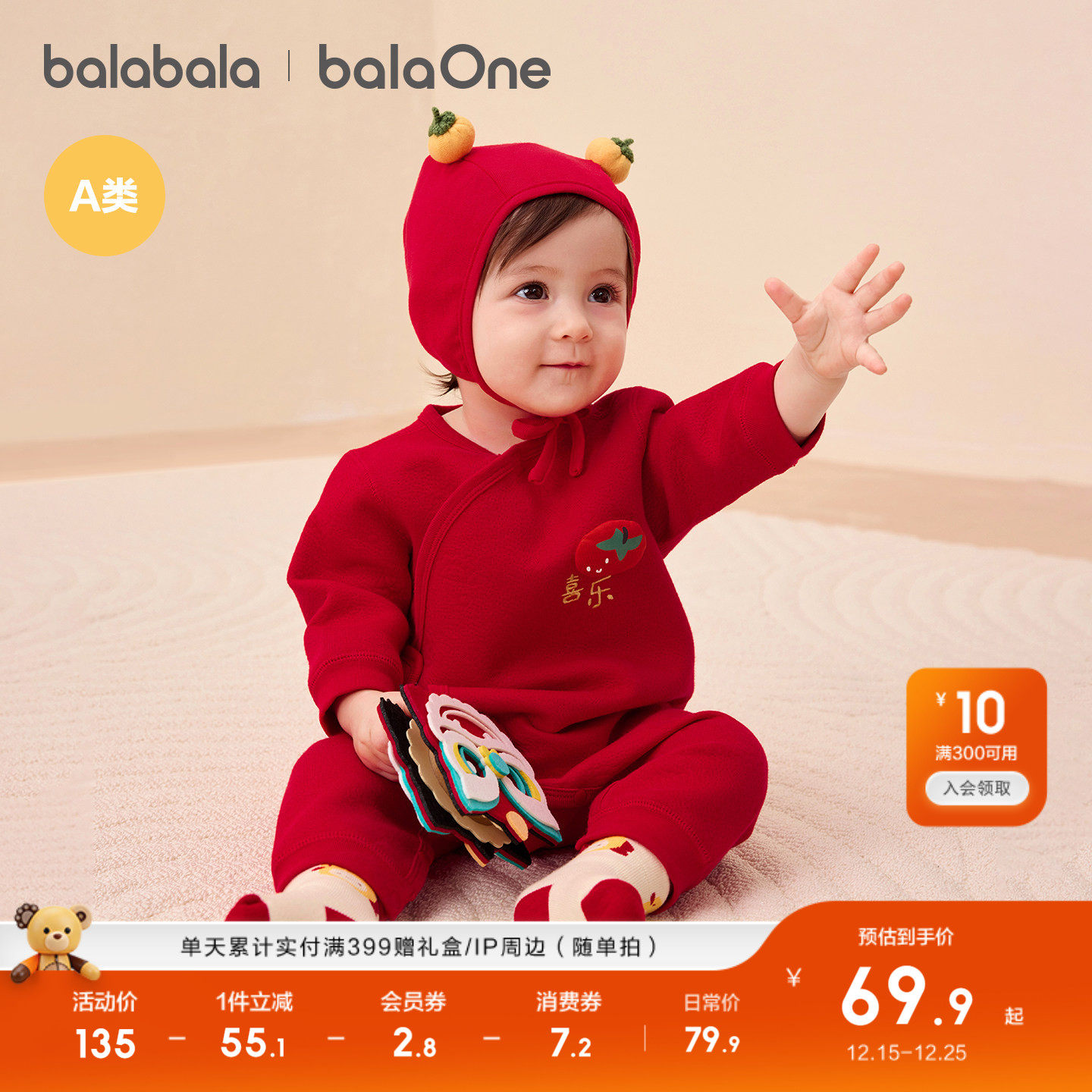 巴拉巴拉童装婴儿连体衣新生儿宝宝爬服2025新款夹棉衣服加厚萌趣