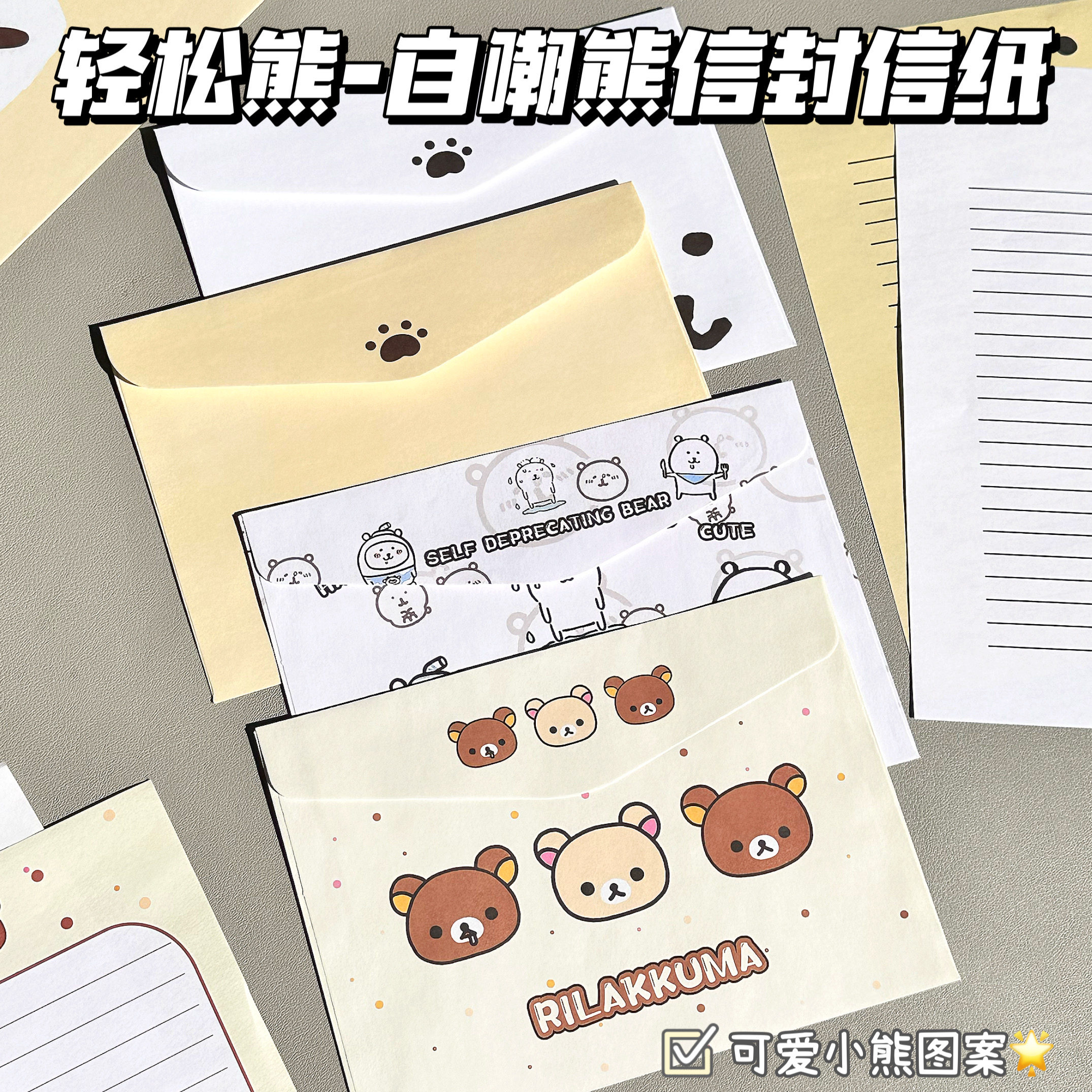 轻松熊卡通ins风可爱信纸信封套装高颜值少女心学生手写祝福贺卡