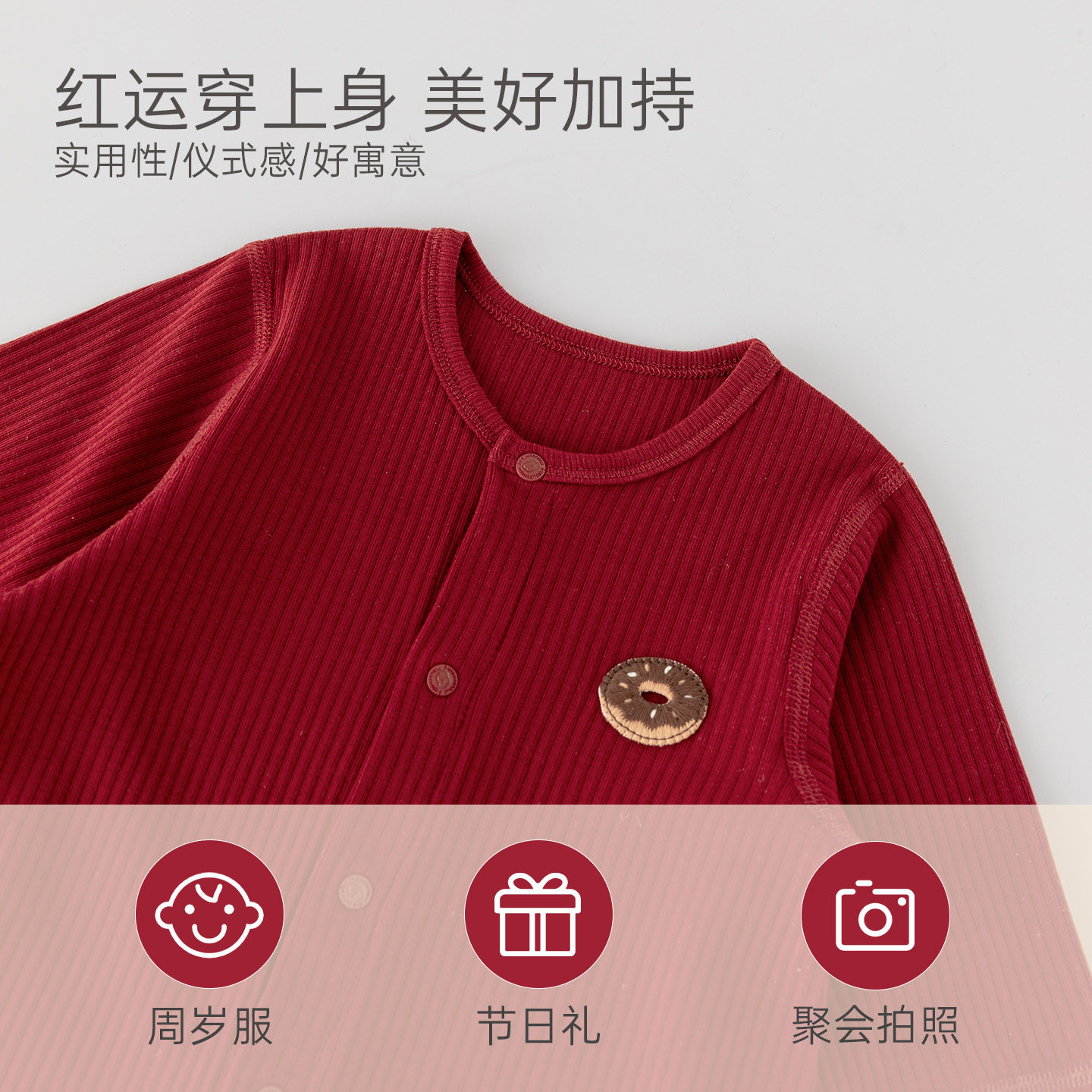 木生棉宝宝长袖连体衣秋冬季婴儿弹力红色喜庆哈衣爬服周岁新年服