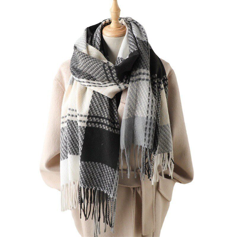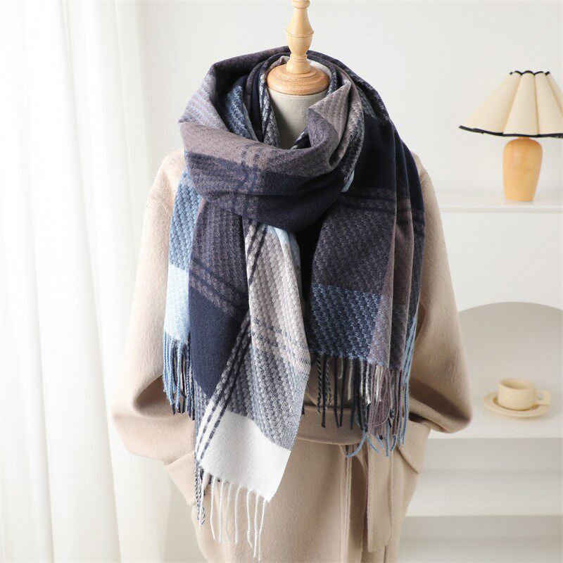 英伦气质仿羊绒格子保暖披肩围脖男女通用秋冬季时尚百搭流苏围巾