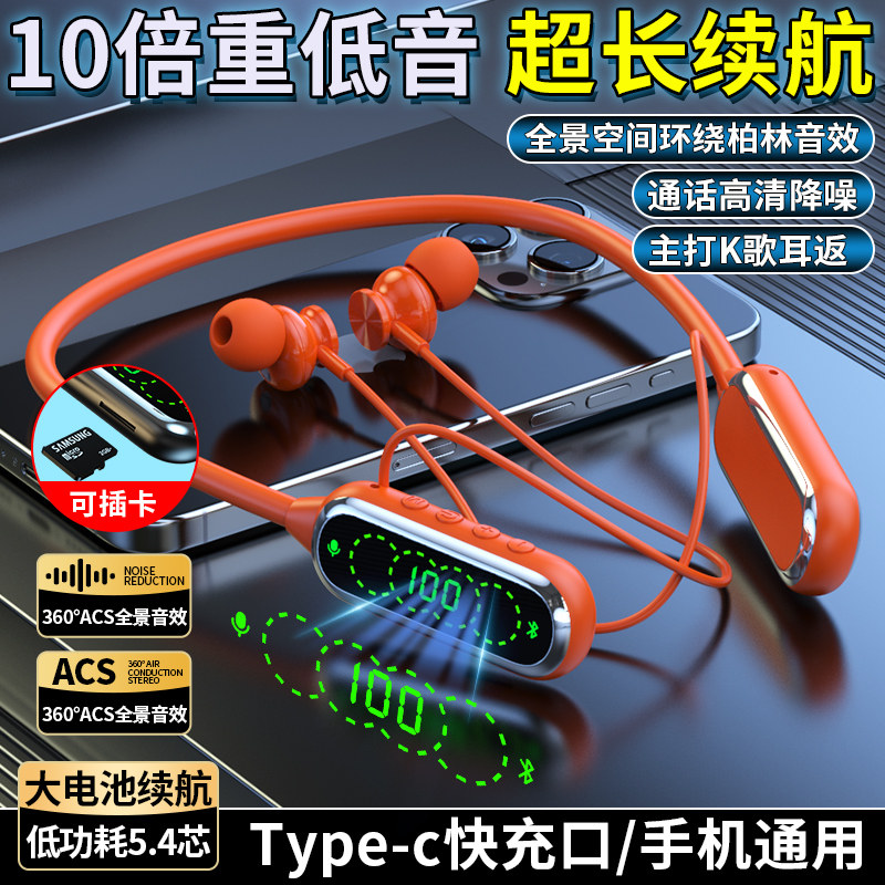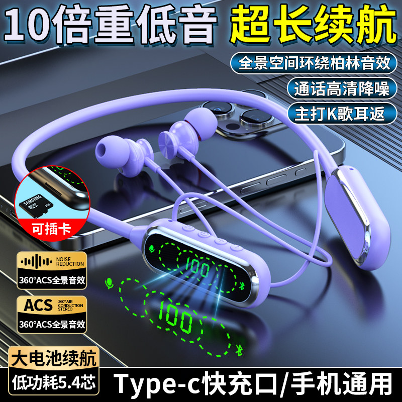 超长续航大电量蓝牙耳机无线颈挂脖式运动2025新款跑步专用高音质