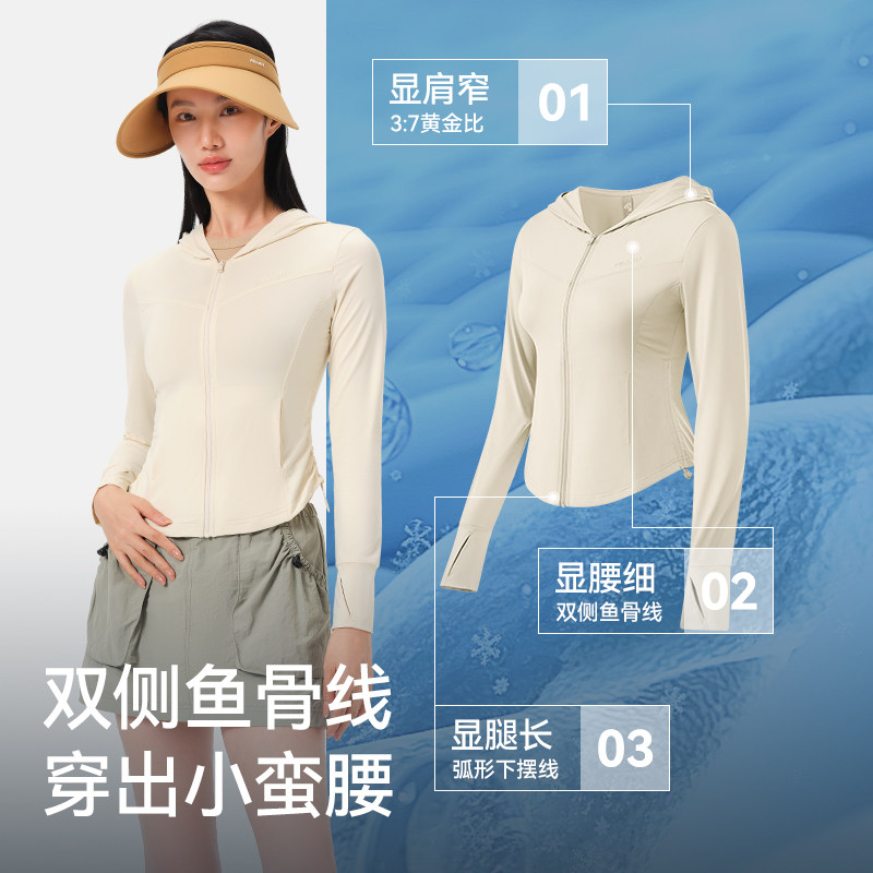 【小光盾S】伯希和修身防晒衣女新款户外跑步冰丝连帽运动防晒服