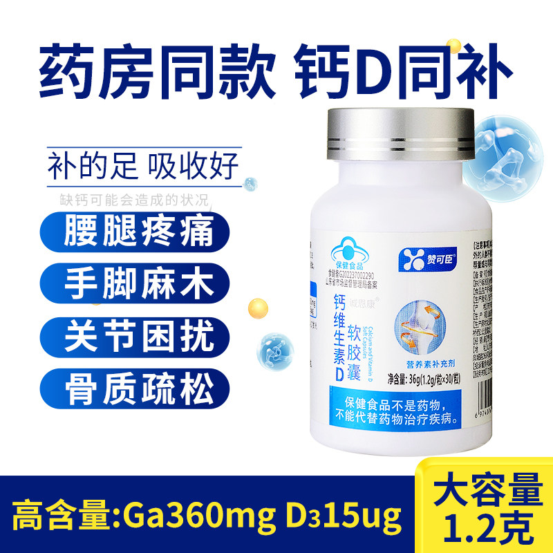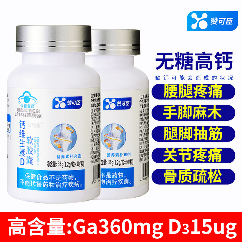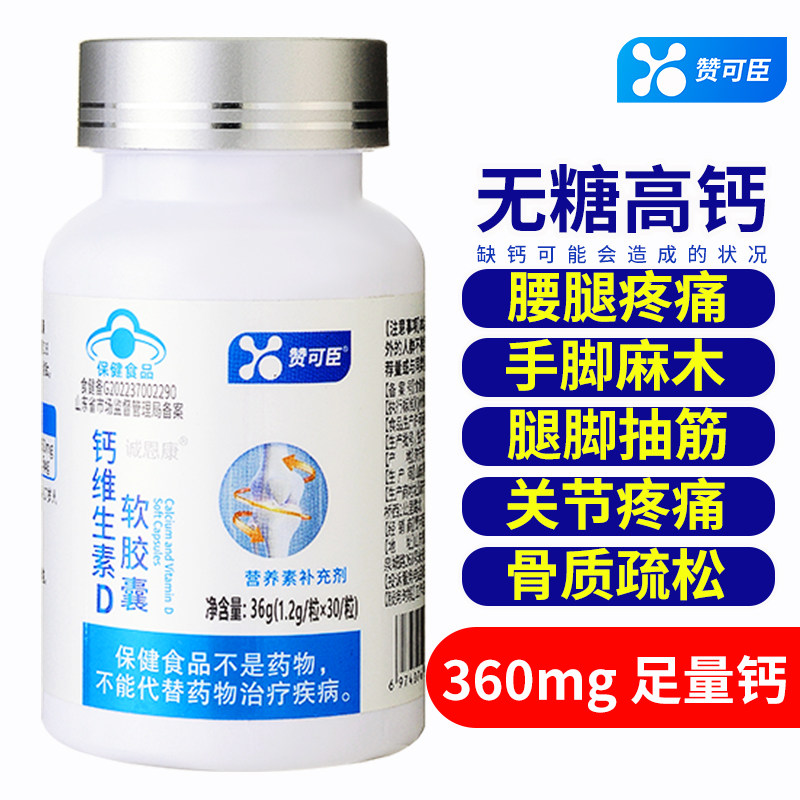无糖中老年钙片维生素D软胶囊补钙男女柠檬酸钙青少年钙碳酸钙