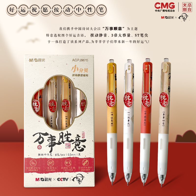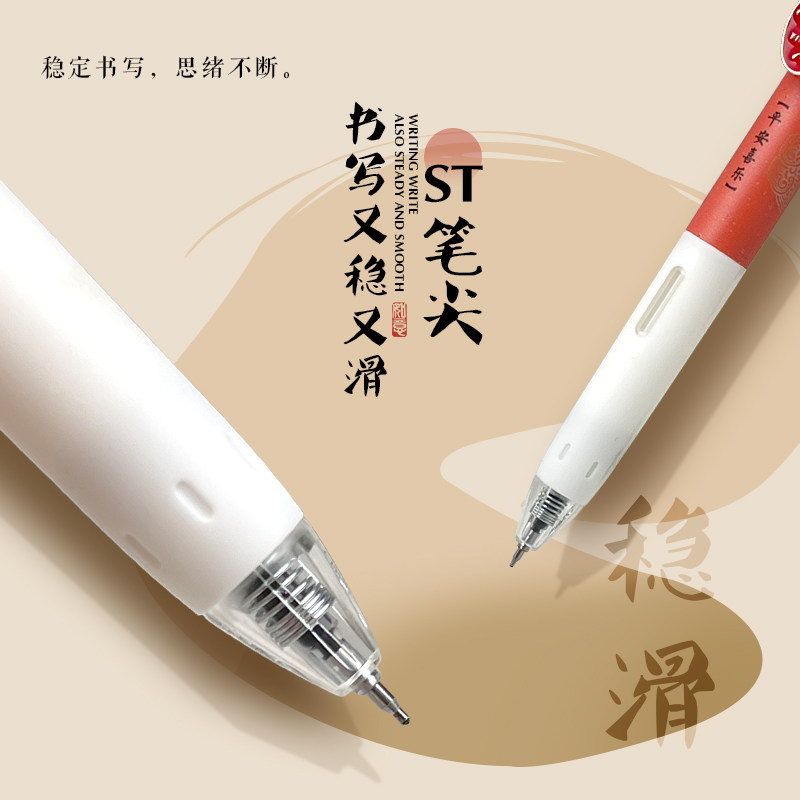 晨光文具万事胜意小分贝速干按动静音ST中性笔0.5学生用碳素黑笔大容量考试必备刷题专用办公水笔子弹头静音