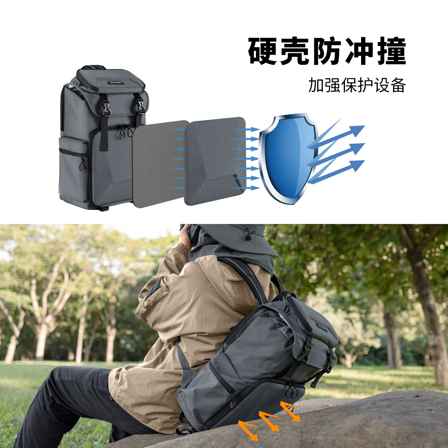 KFCONCEPT卓尔摄影包双肩多功能大容量专业单反相机包硬壳防水防震适用佳能索尼户外旅行相机背包收纳