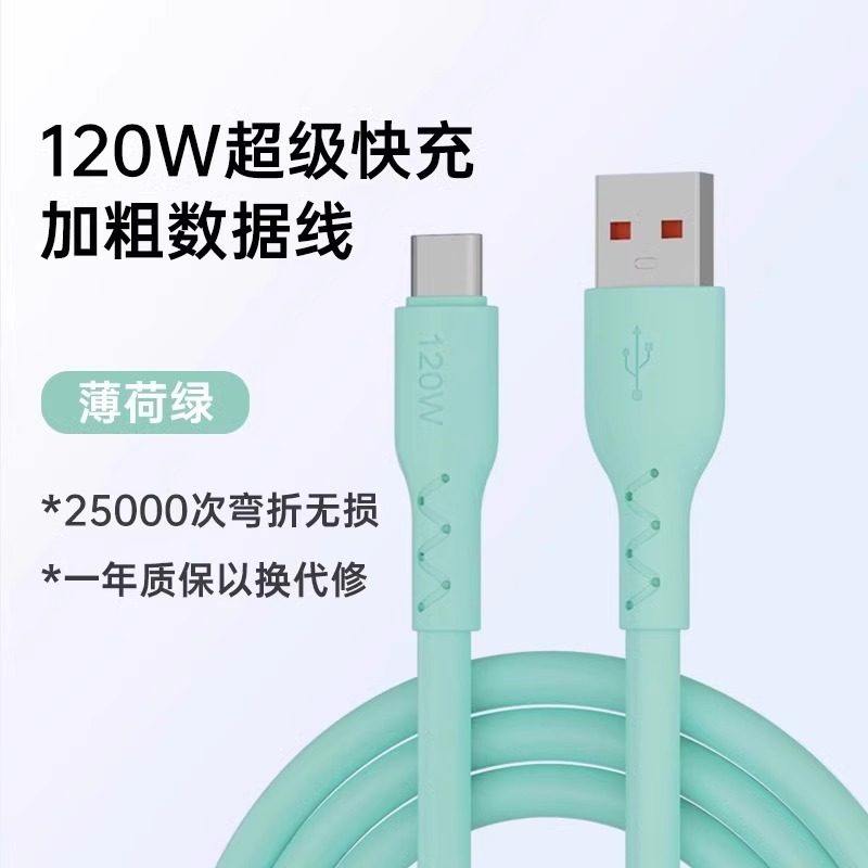 加粗120W快充type-c充电线闪充手机充电器6A适用于华为荣耀mate40pro充电nova7/P30安卓车载马卡龙数据线加长