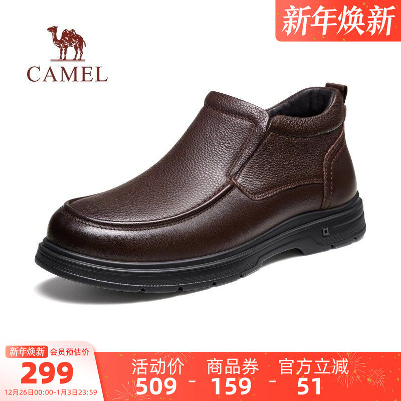 骆驼男鞋2025冬季新款真皮爸爸鞋防滑舒适加绒保暖休闲商务皮鞋男