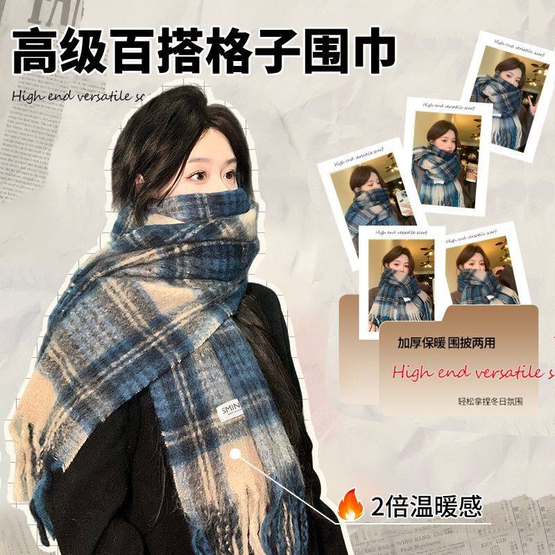 三福格子围巾韩系高级感保暖围脖披肩两用旅游外搭女冬季2025新款