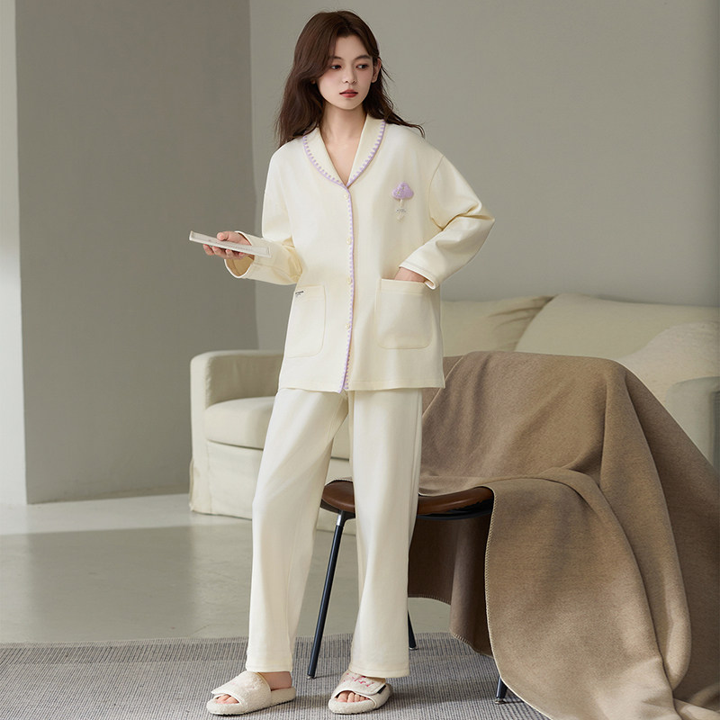 都市丽人春秋季7A抗菌纯棉睡衣女士可外穿防螨家居服套装大码胖mm