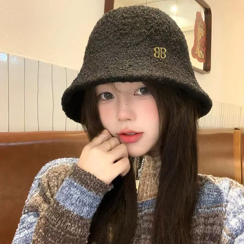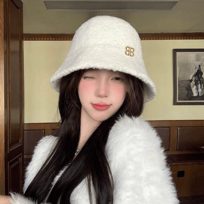 毛绒渔夫帽女秋冬大头围女士韩版水桶帽子百搭保暖盆帽显脸小防寒