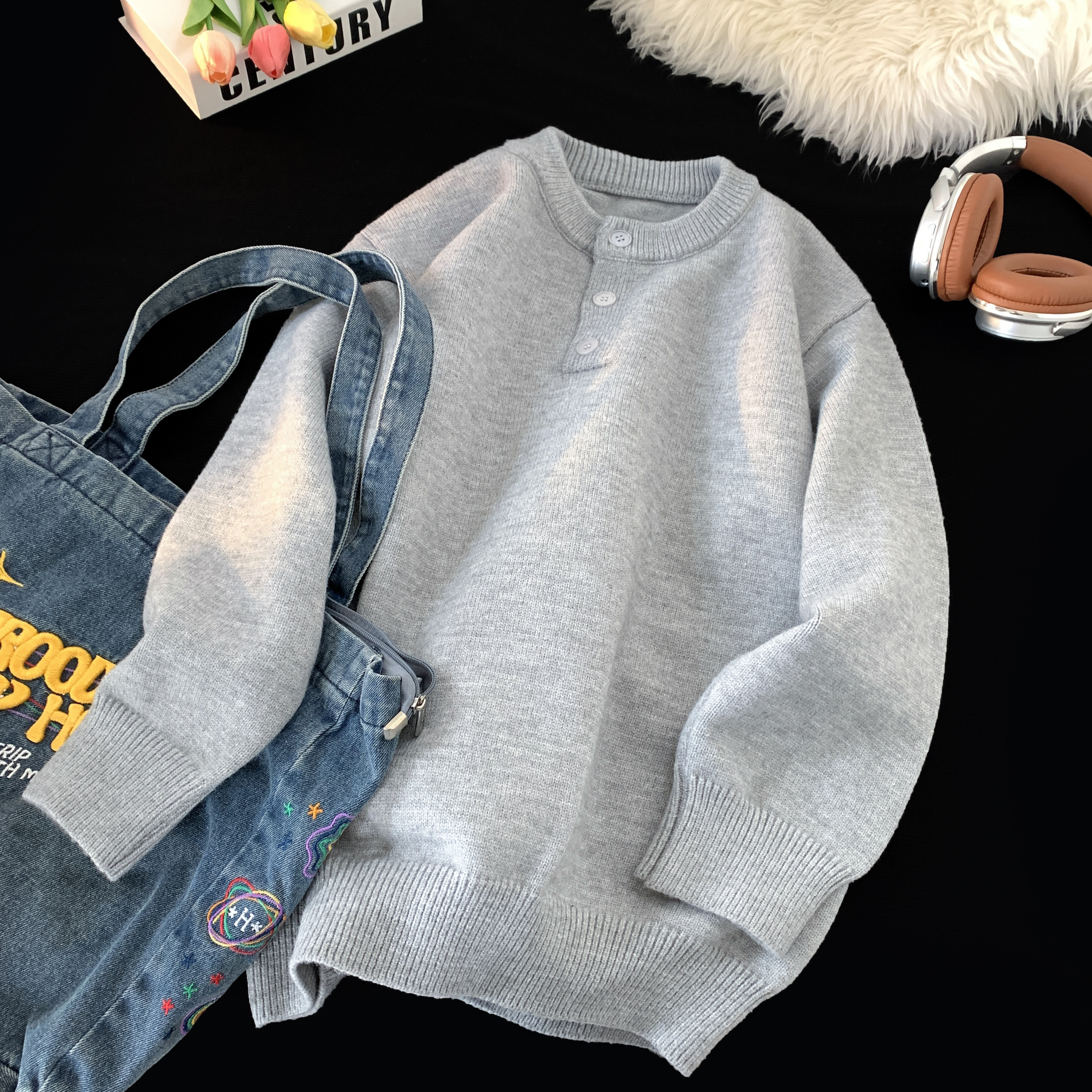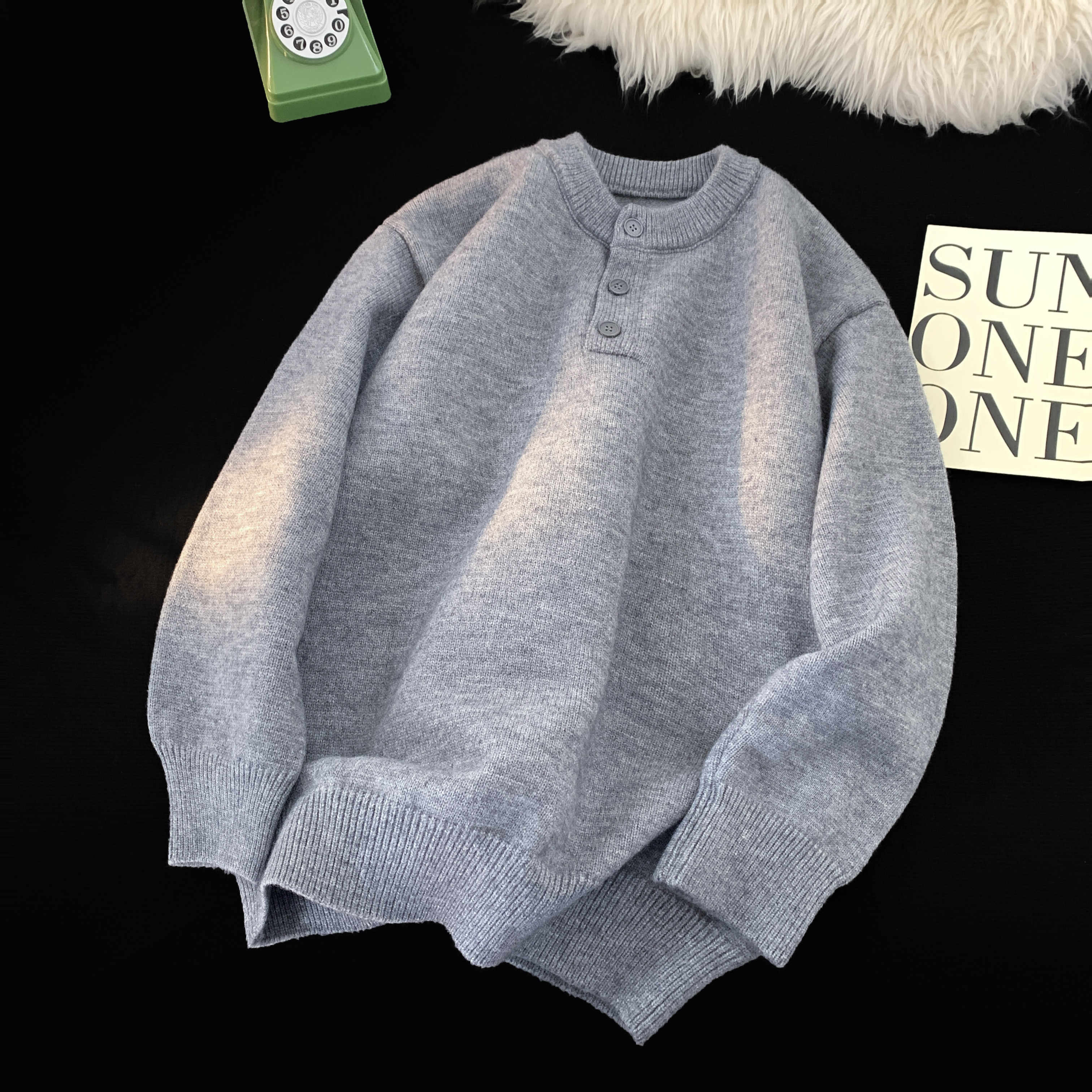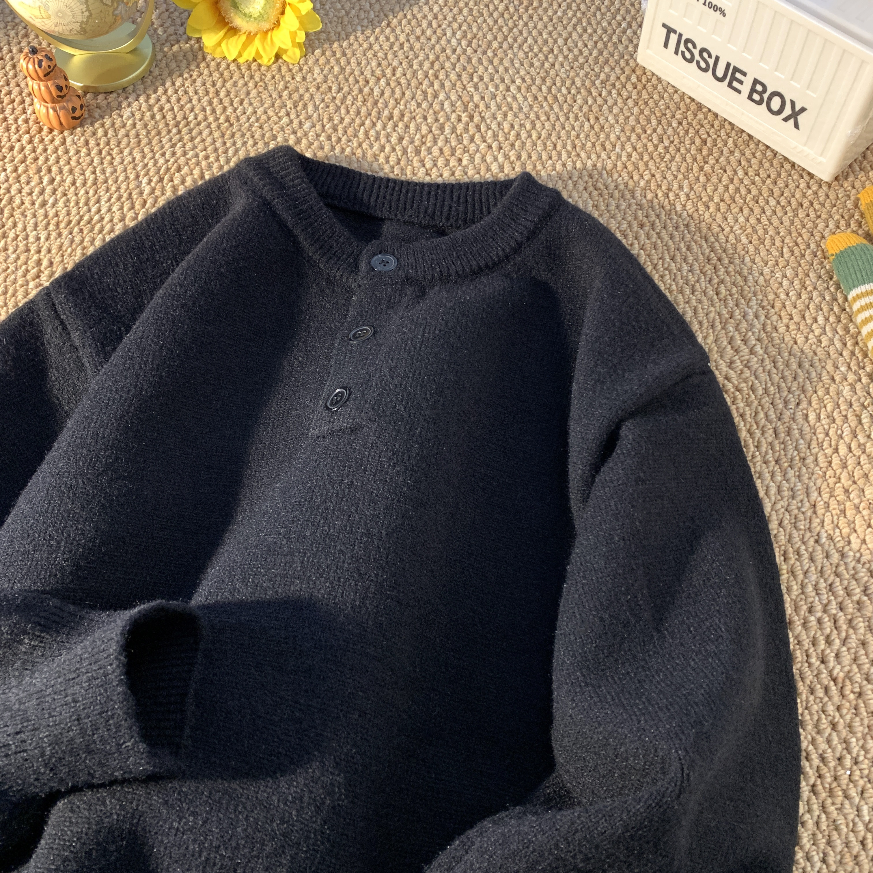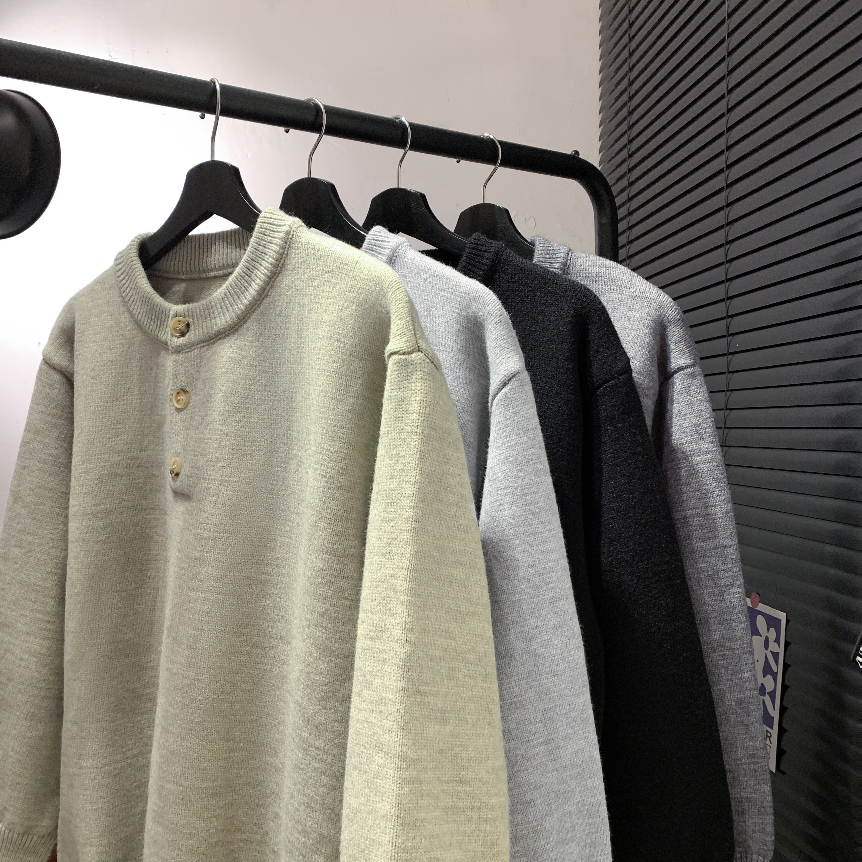 美式纯色亨利领毛衣男秋冬新款潮牌高级感针织衫休闲保暖情侣外套