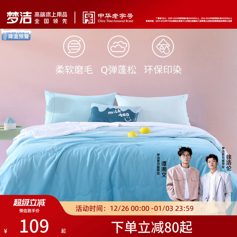 梦洁家纺磨毛印花空调被蓬松舒适春秋纤维被学生儿童四季被子夏被