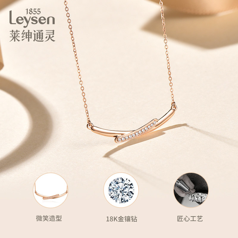 莱绅通灵 甜蜜微笑 18k金钻石项链 送礼 百搭项链