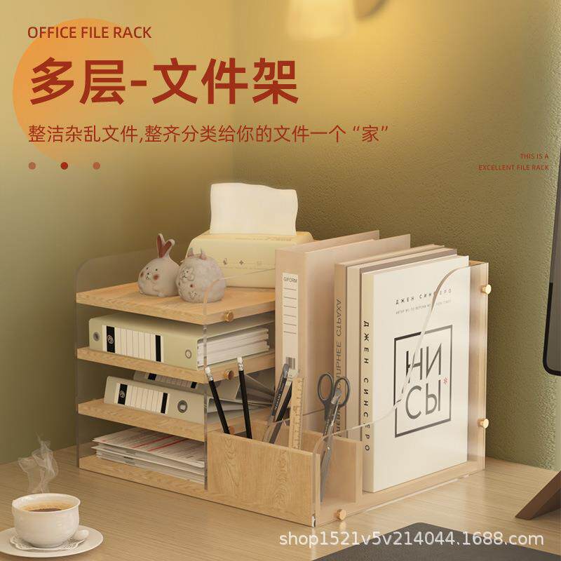 办公桌收纳置物架文件收纳盒办公用品文件架桌面书架多层大容量文件框文件夹A4纸资料档案整理架金属书立架