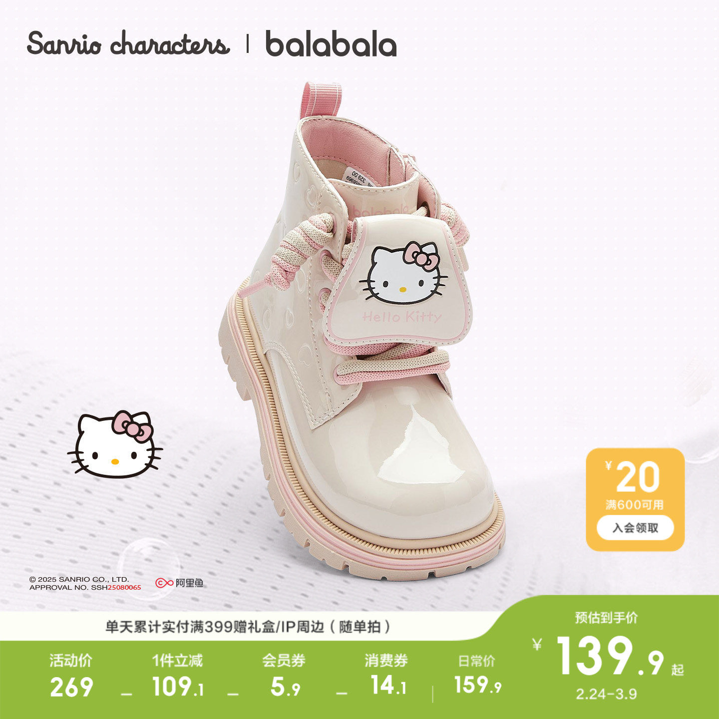 三丽鸥联名马丁靴,时尚亮面短靴