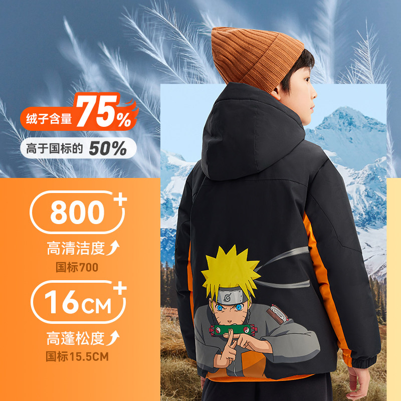 【清仓价】火影IP安踏儿童羽绒服男童冬季冬装三防外套连帽保暖